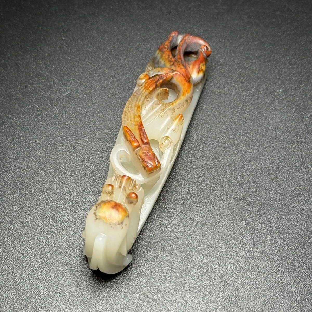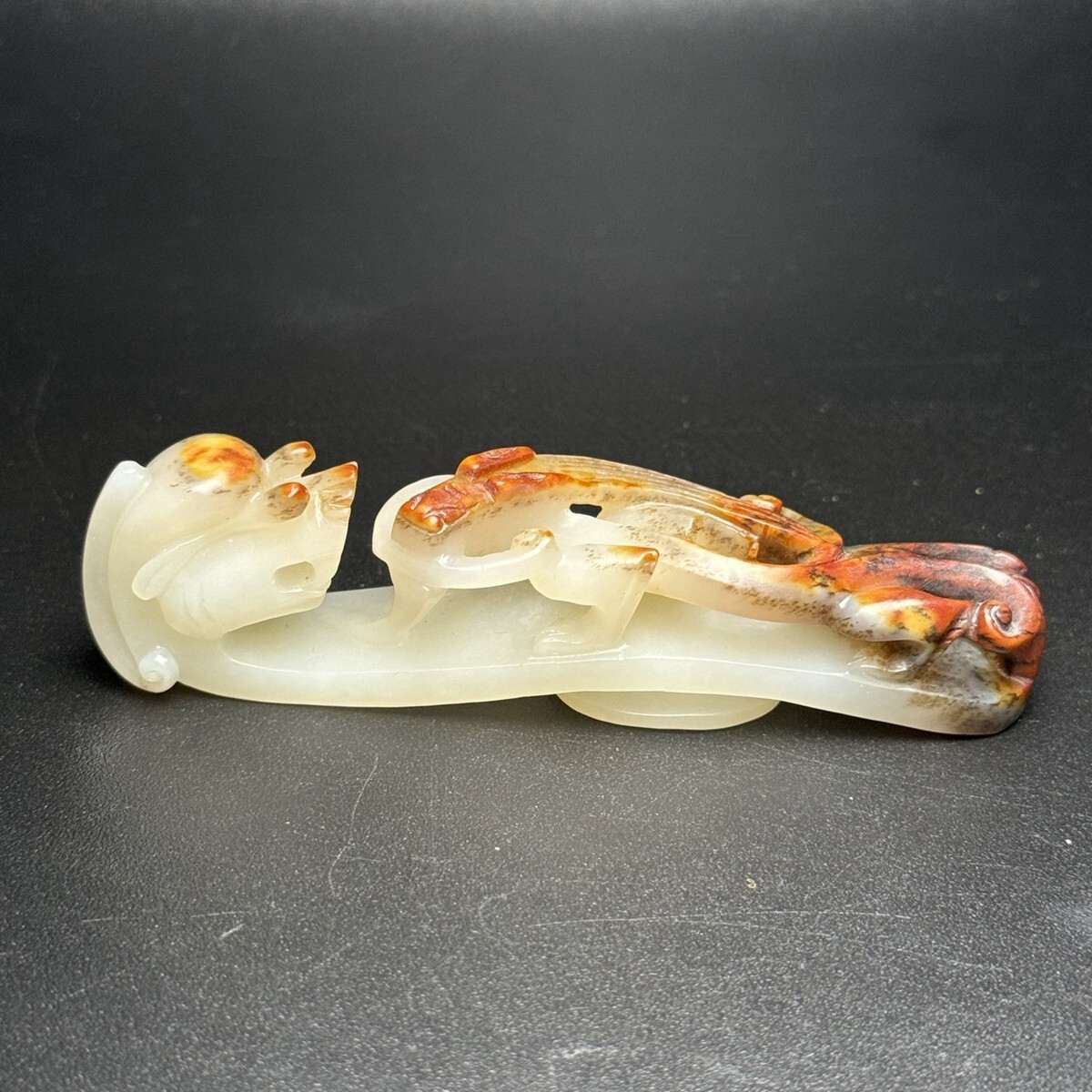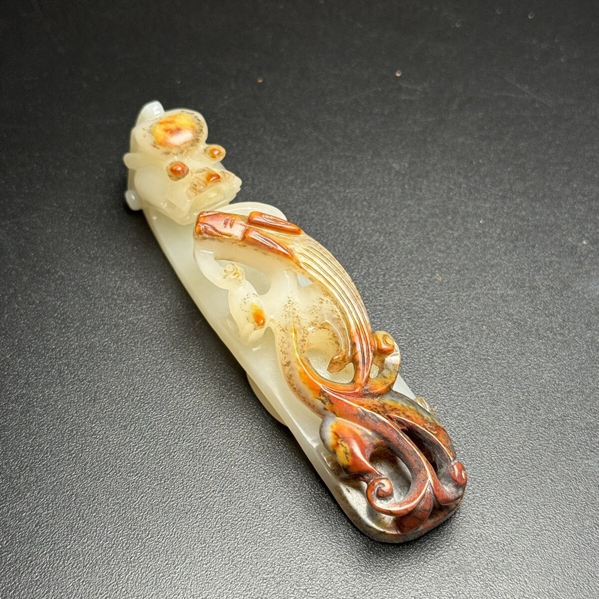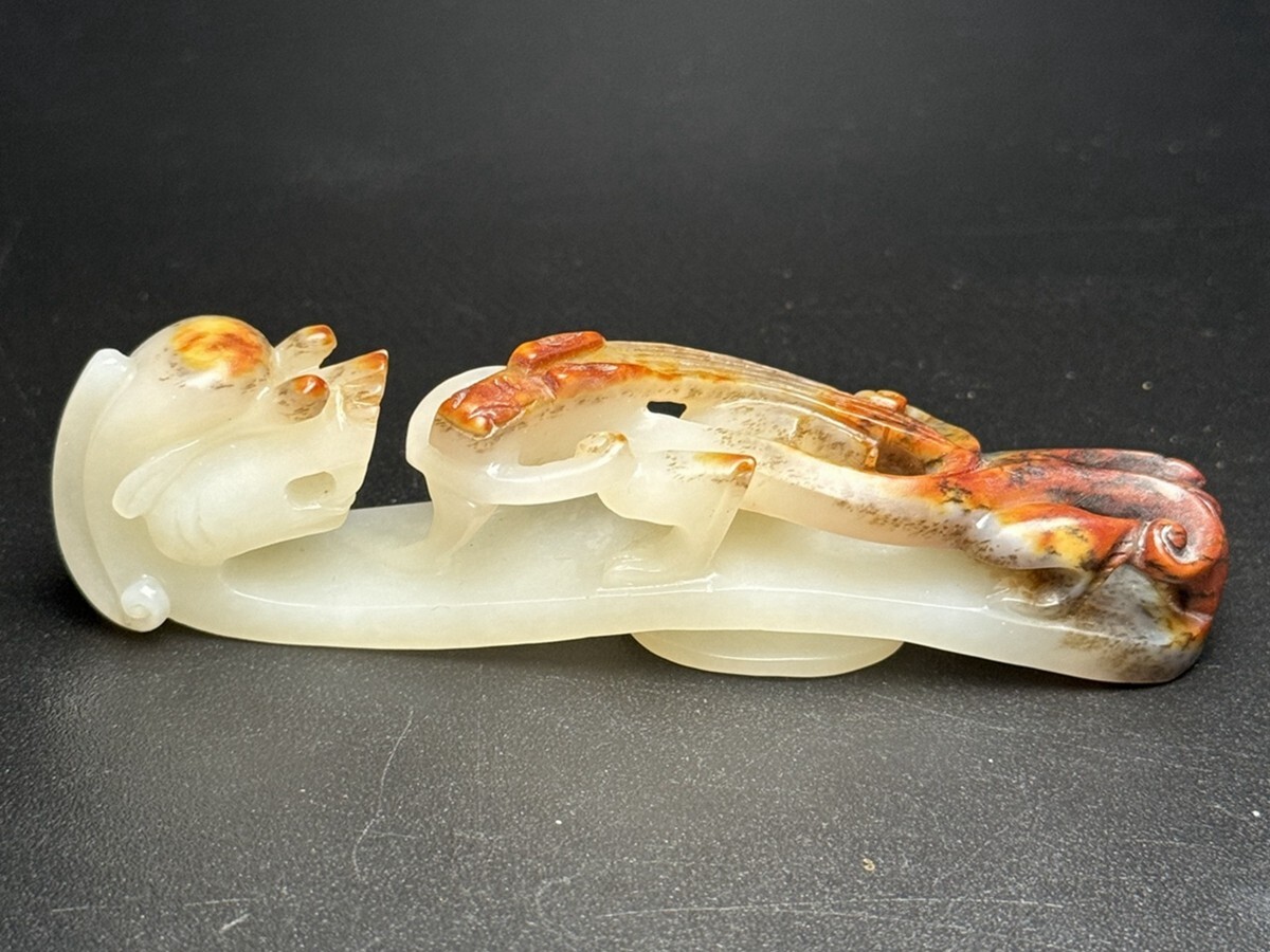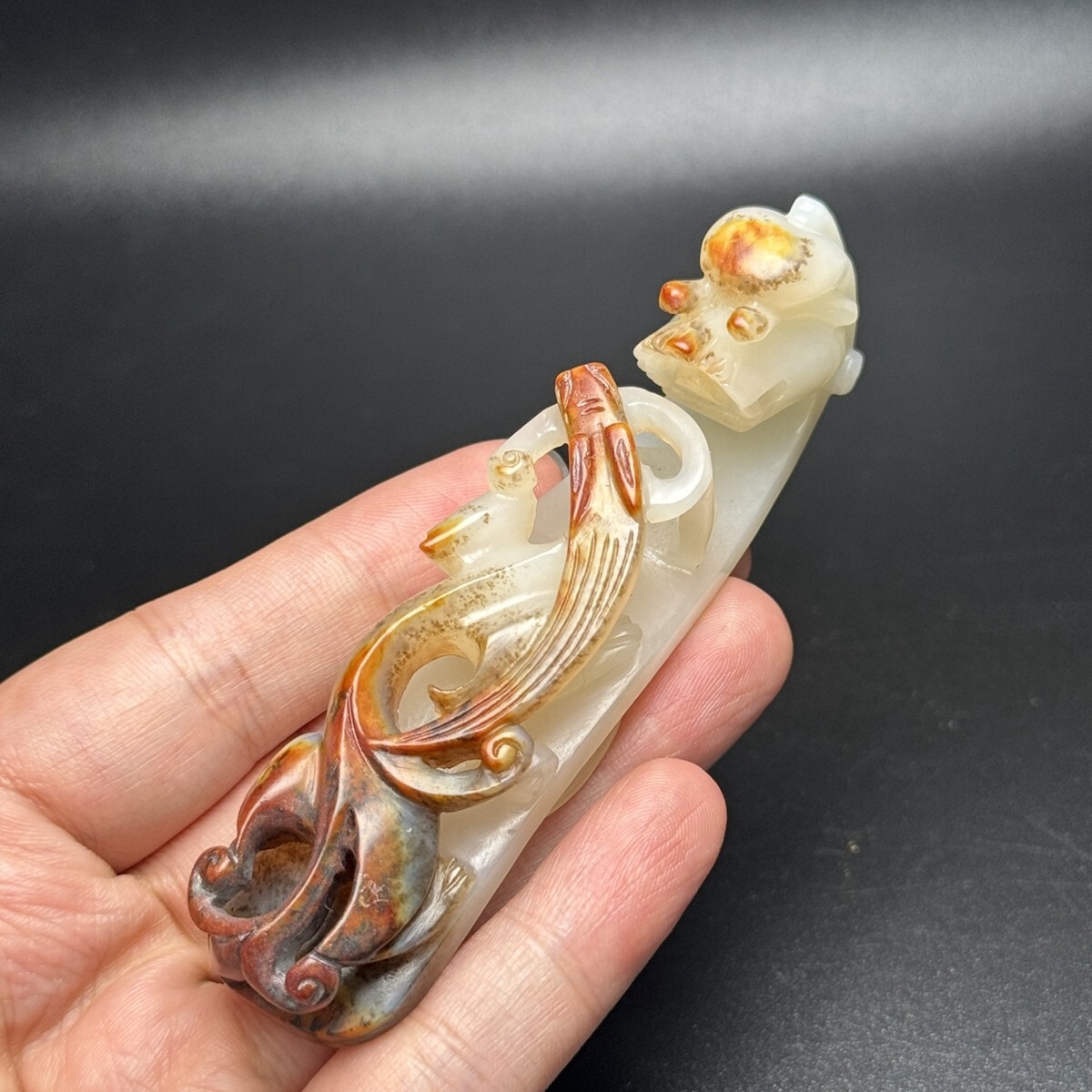 【瓏】和田玉 彫 蒼龍教子 望子成龍 龍勾 時代物 極細工 手彫り 置物 裝身具 賞物 中国古美術 蔵出