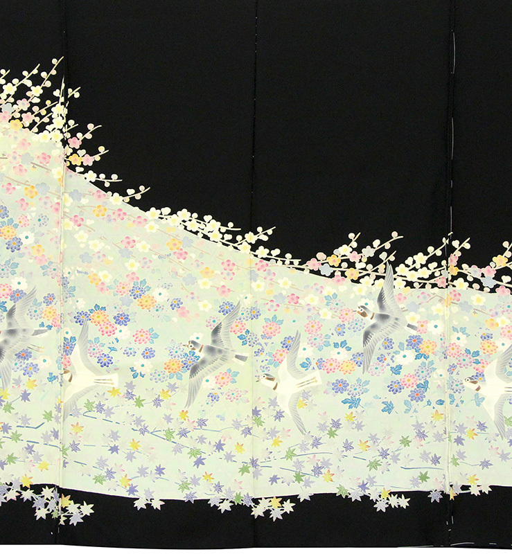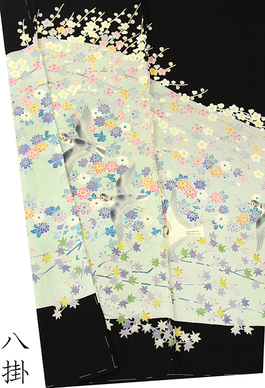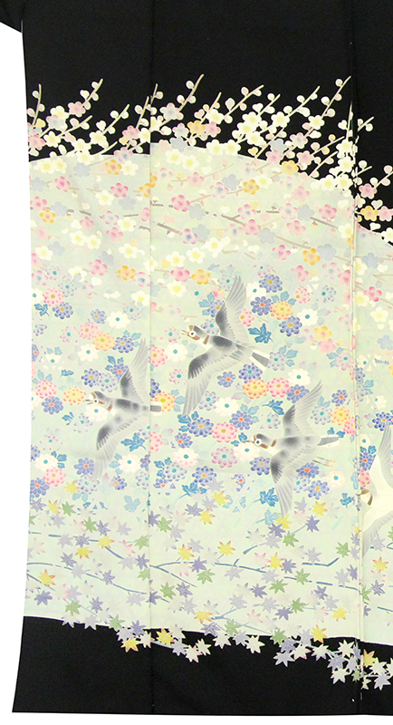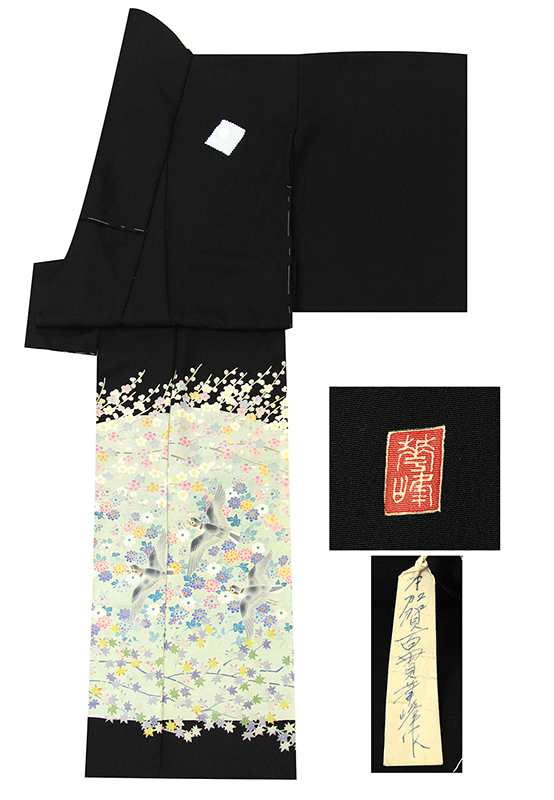 | ※記念感謝祭【仕立無料】本加賀友禅巨匠百貫華峰先生作☆特撰四季花鳥文☆本加工単彩染手描き黒留袖 |