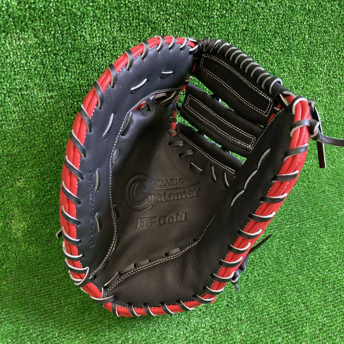 58 40%引 ハイゴールド ソフトボール用捕手・一塁手兼用ミット 左投用 ブラック×レッドオレンジ BSG965F 新品