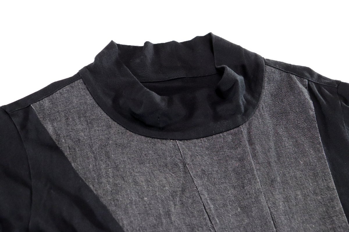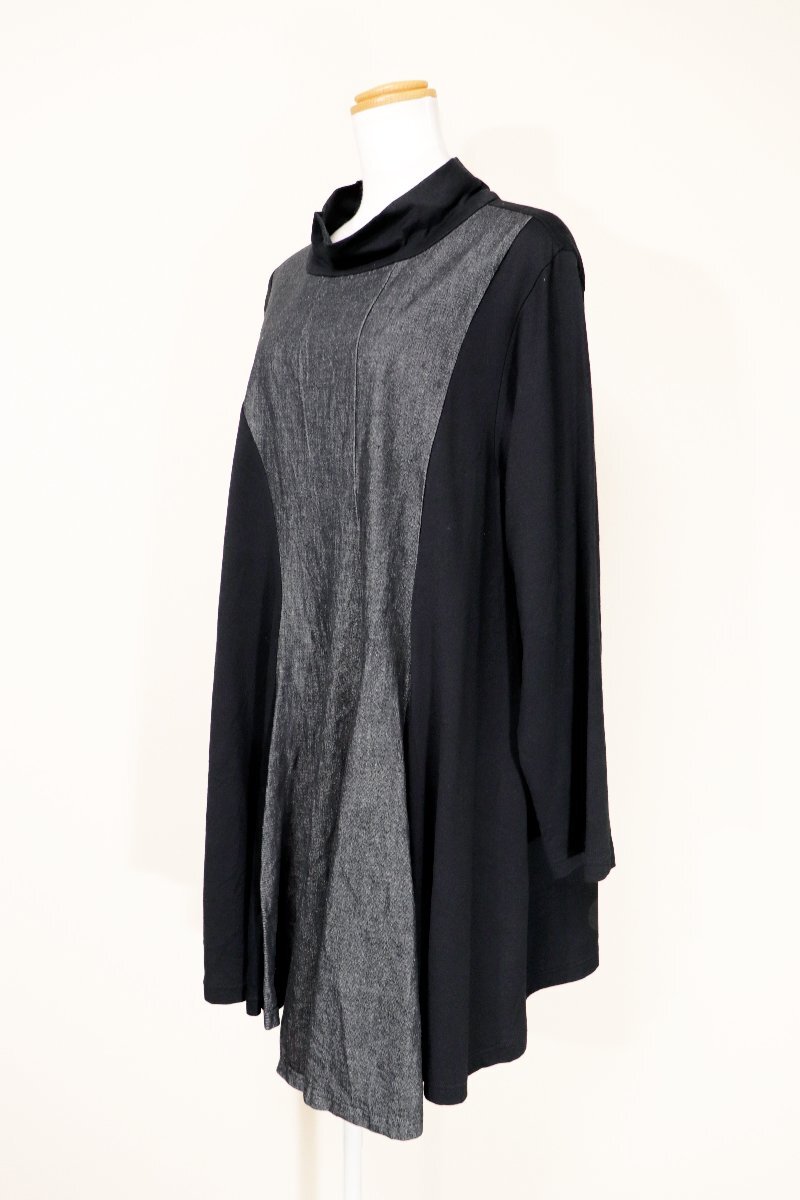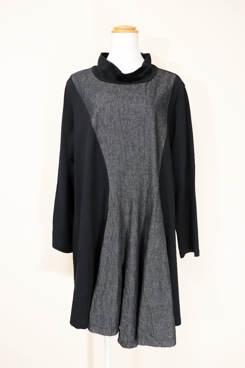 ☆美品2023☆慈雨センソユニコ/異素材切り替え変形長袖チュニックワンピース:40/黒xz633