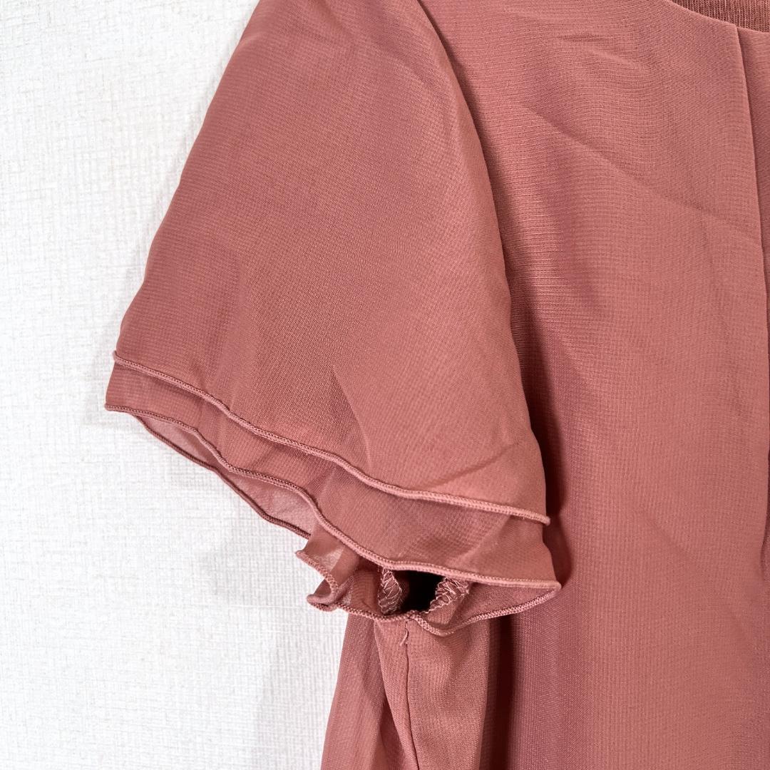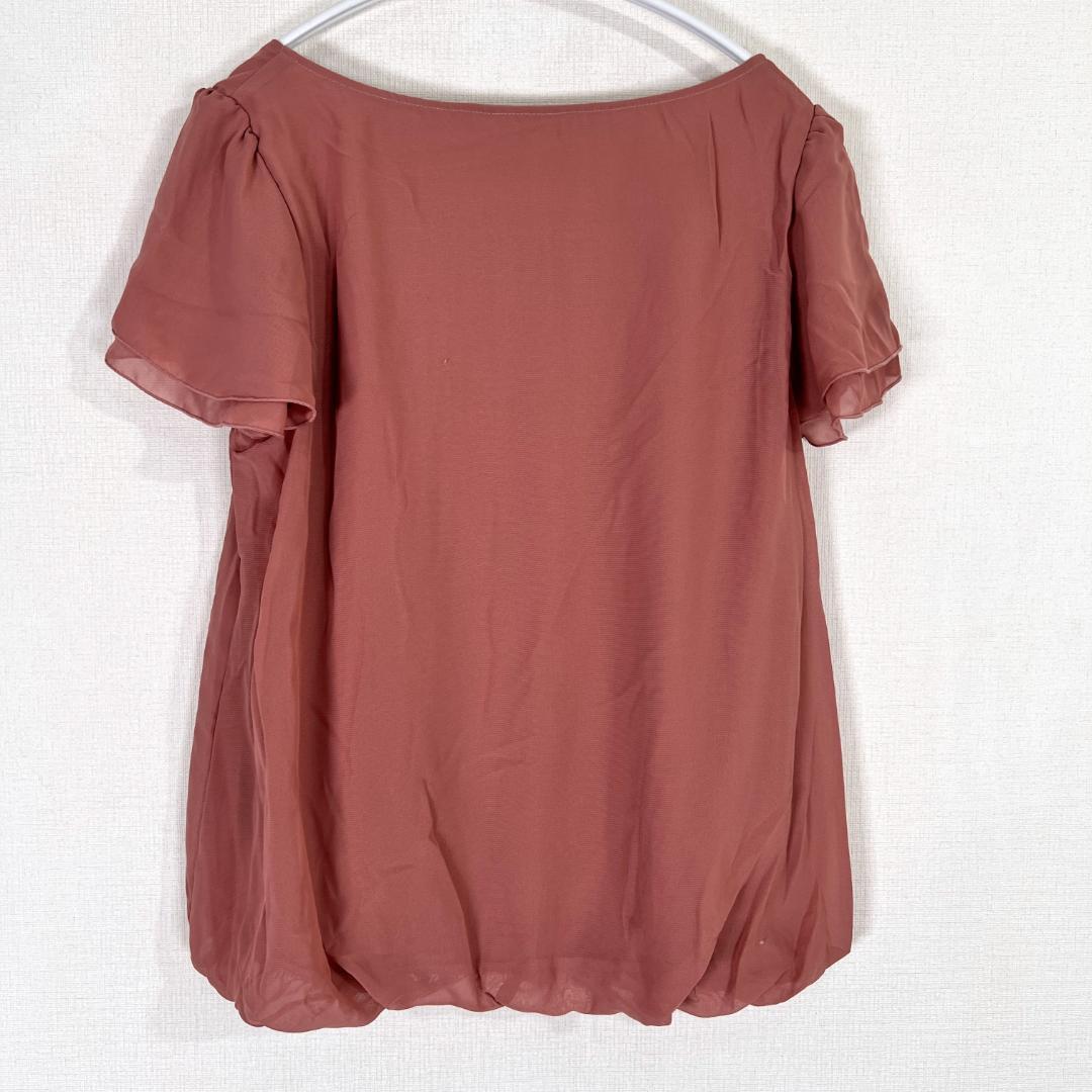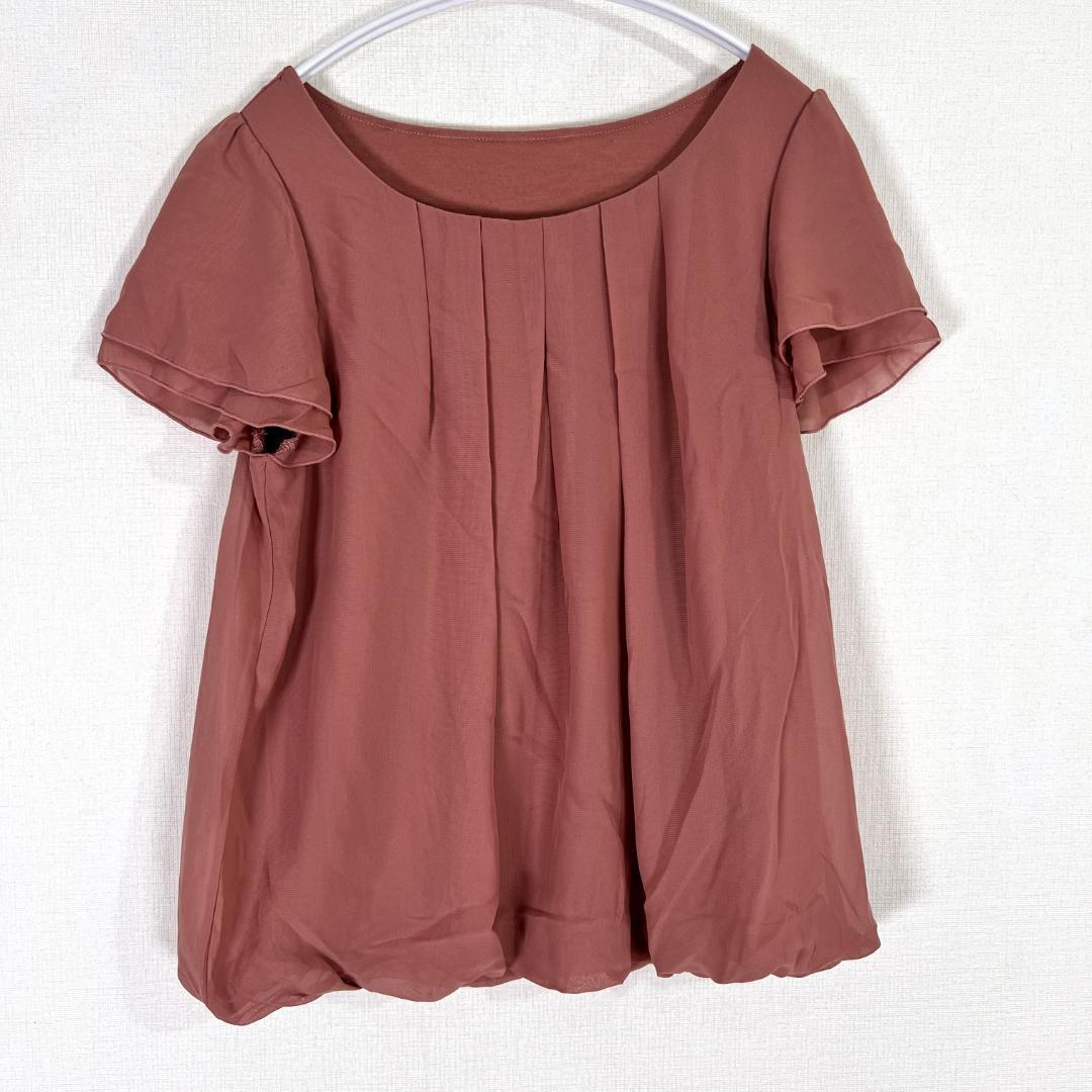 女性用のピンクブラウン系の半袖カットソー トップスです。大人可愛いデザインで、シンプルなコーディネートにぴったりです。中古品ですが目立つような傷や汚れもなくまだまだ使っていただけます。古着 エフリード