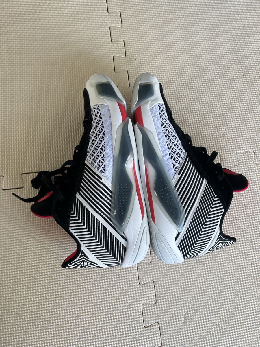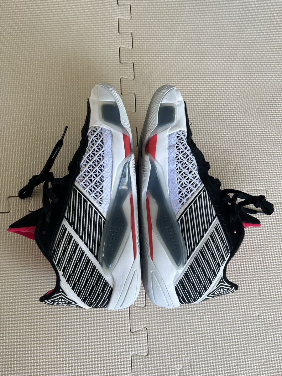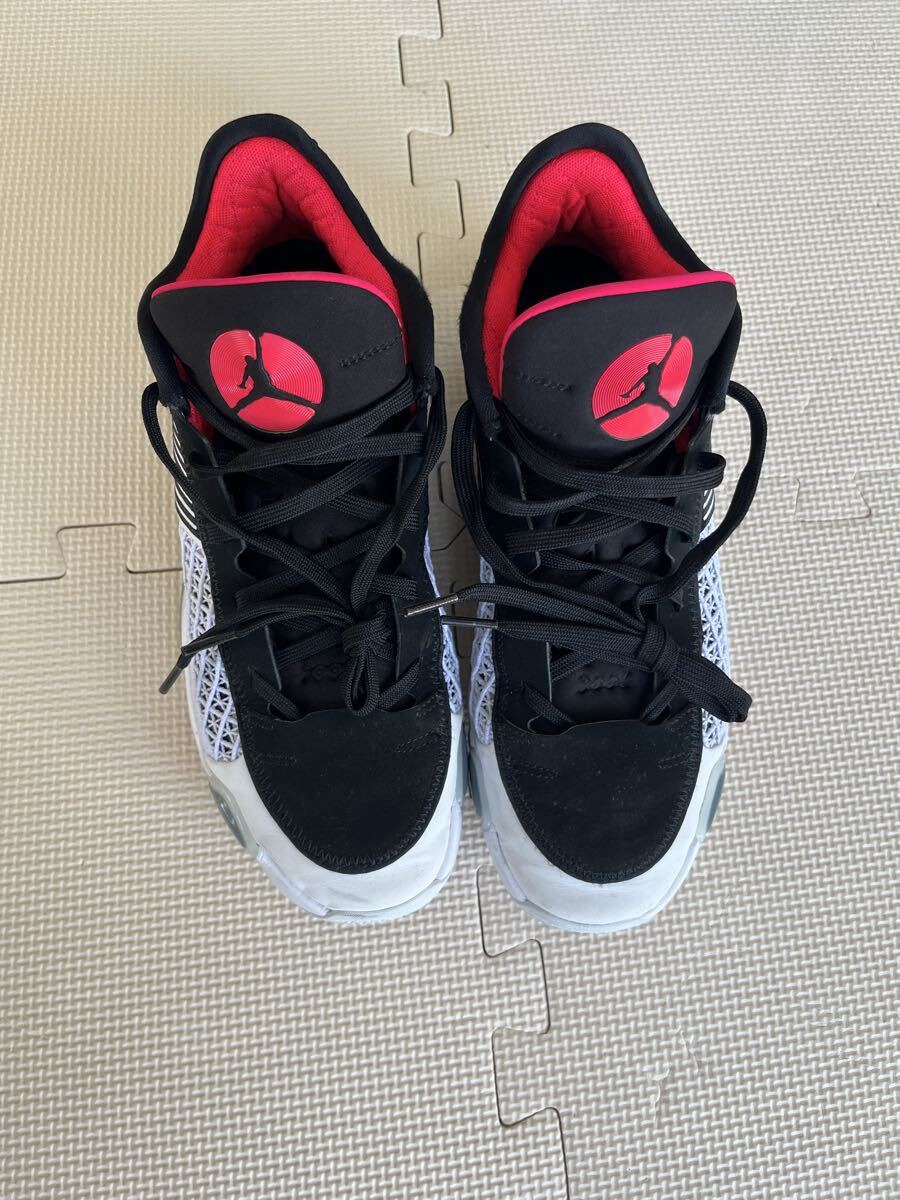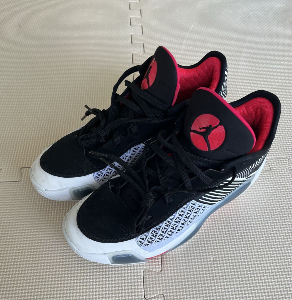 ジョーダン38lowです。中古を購入しましたが、サイズが合いませんでした。つま先に若干汚れがありますが、全体的にきれいです。