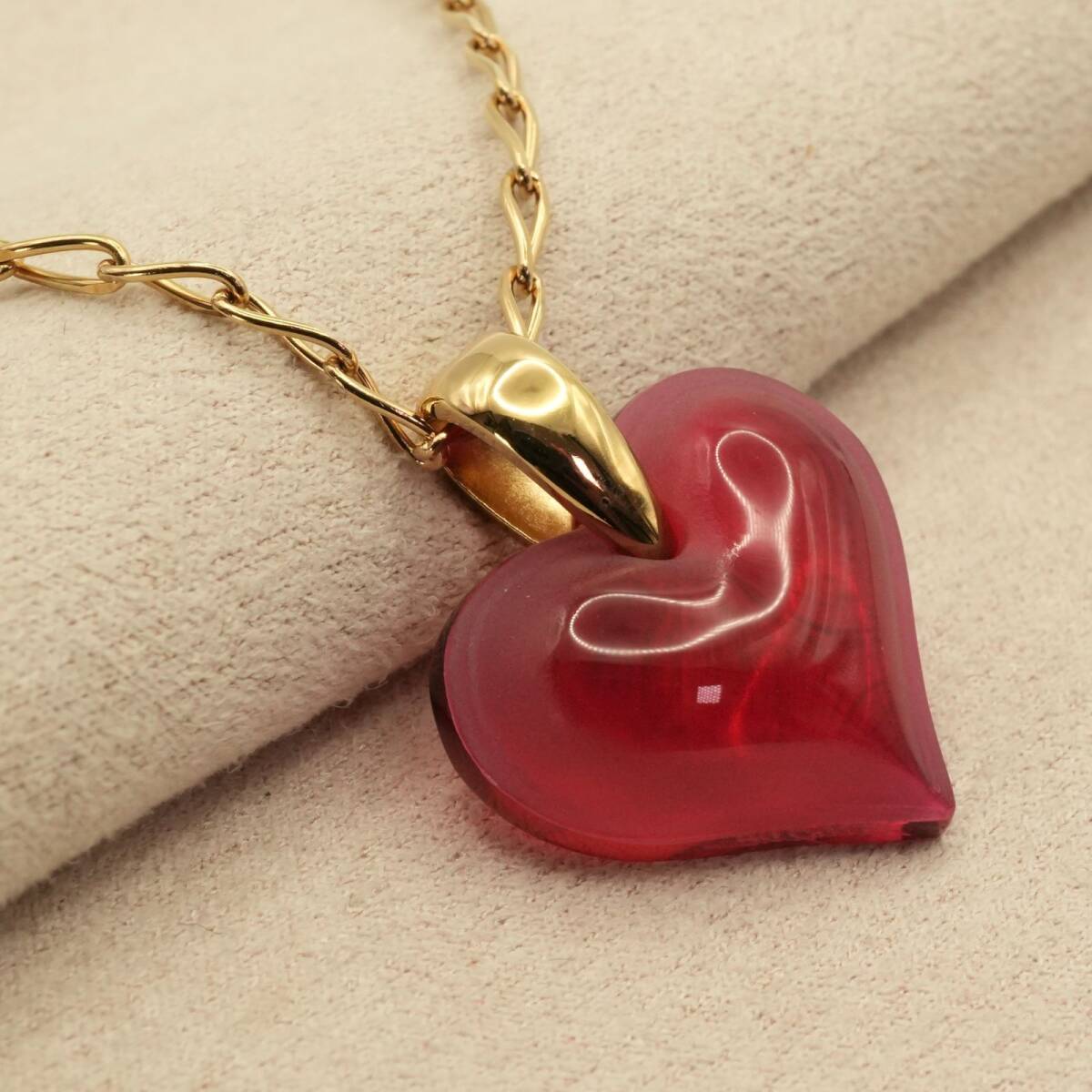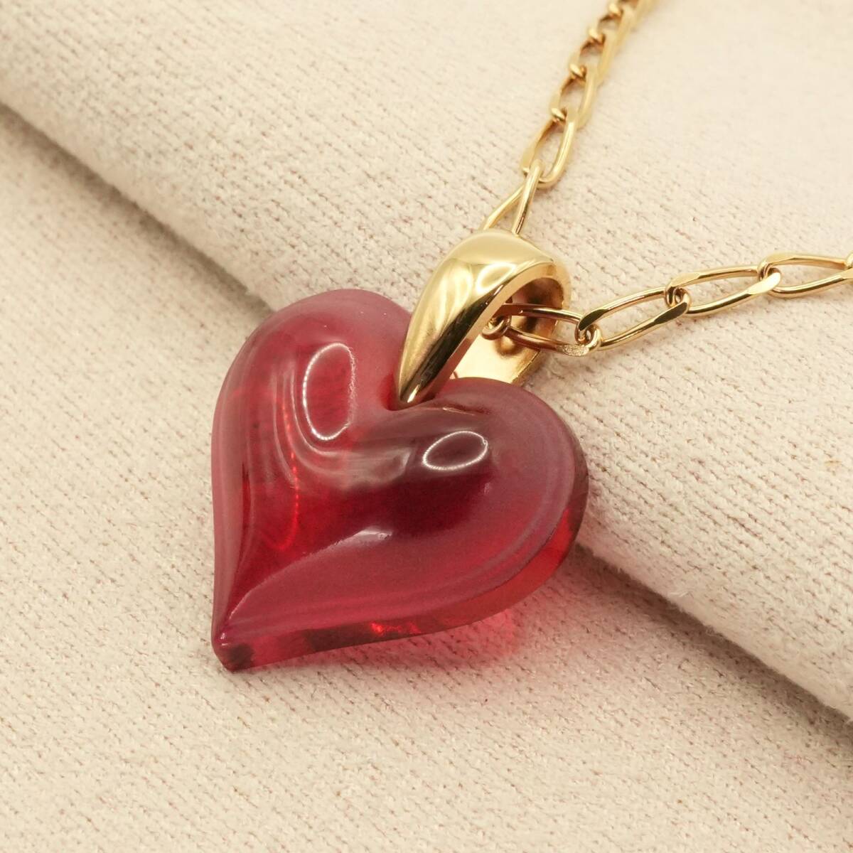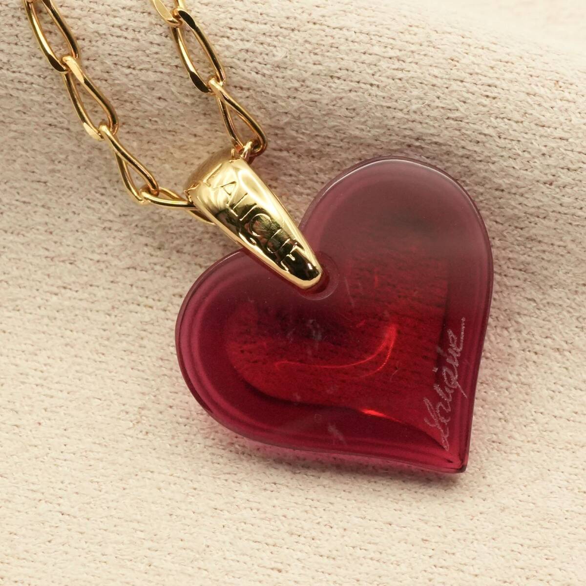 美品 ラリック アムールボークー ハート レッド ネックレス/25-1091箱