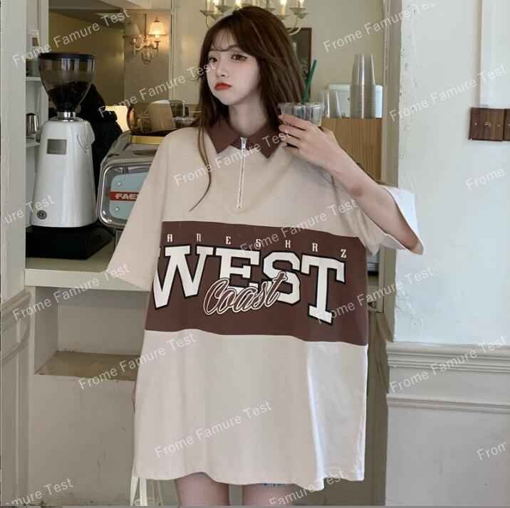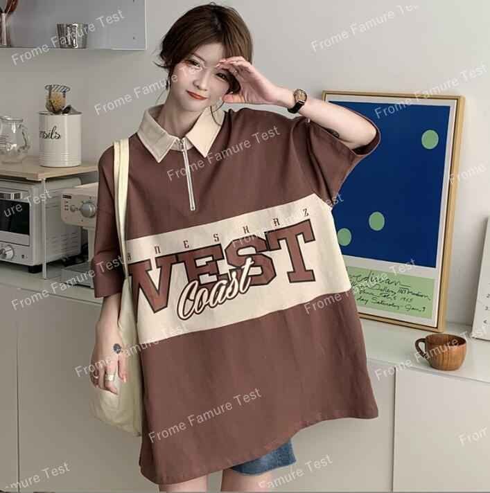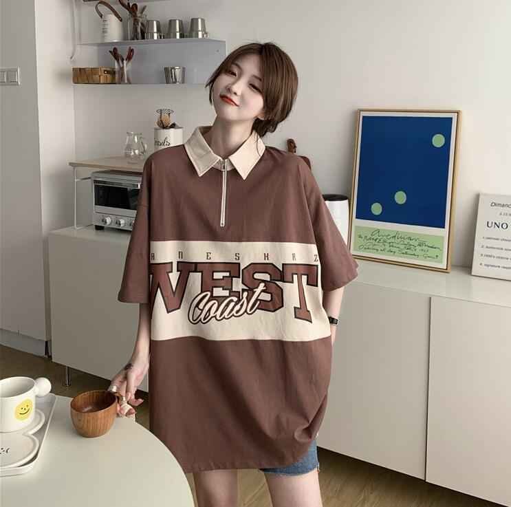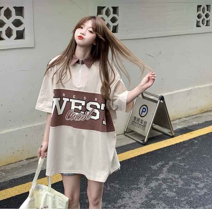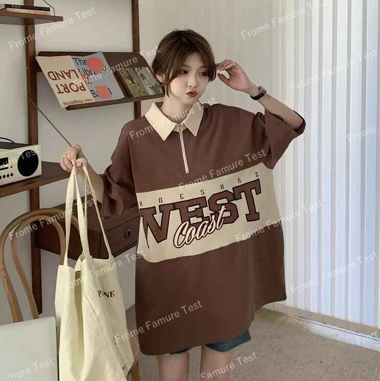韓国風 レディース 半袖Tシャツ 新しい夏 気質 ファッションTシャツ 学生ポロシャツ M コーヒー色