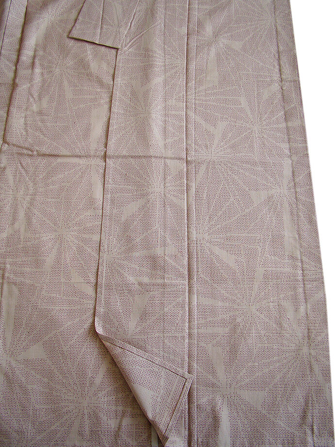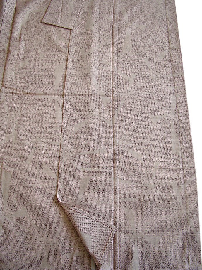 商品説明 | こちらのお品は「単衣」ですので5月、6月、9月にお召頂ければと思います。 着物には、大きく分けて「袷(あわせ)の着物」と「単衣(ひとえ)の着物」と「夏着物」があります。 反物(表地)を着物に仕立てるときに、裏地類をつけるものを袷の着物、 つけないものを単衣の着物と呼び、胴裏や八掛といった裏地がつかない一枚ものの着物です。 また裏地がないため、座る時などにヒップのラインが目立たないよう、 居敷当て(いしきあて)の生地をつけることもあります。 居敷当ては付いておりません、 しなやかでさらりとして手触り良く着心地良い涼やかな風合いの十日町紬地、 渋い霞色地に赤紫色の織柄が洒落感高い粋な着物姿を演出しております。 |