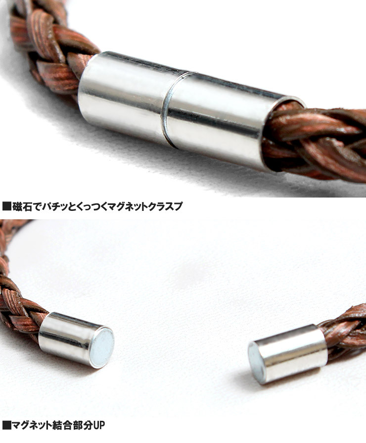 商品名 | 【新品】 F ブラウン レザー ブレスレット メンズ 本革 レザー 編み込み 磁気 マグネット式 バングル アクセサリー |