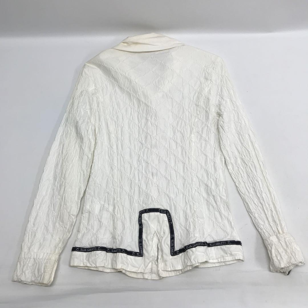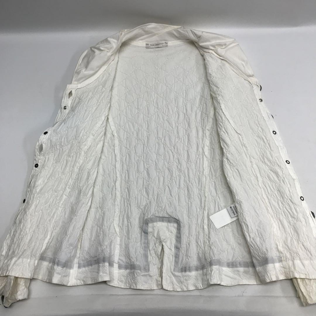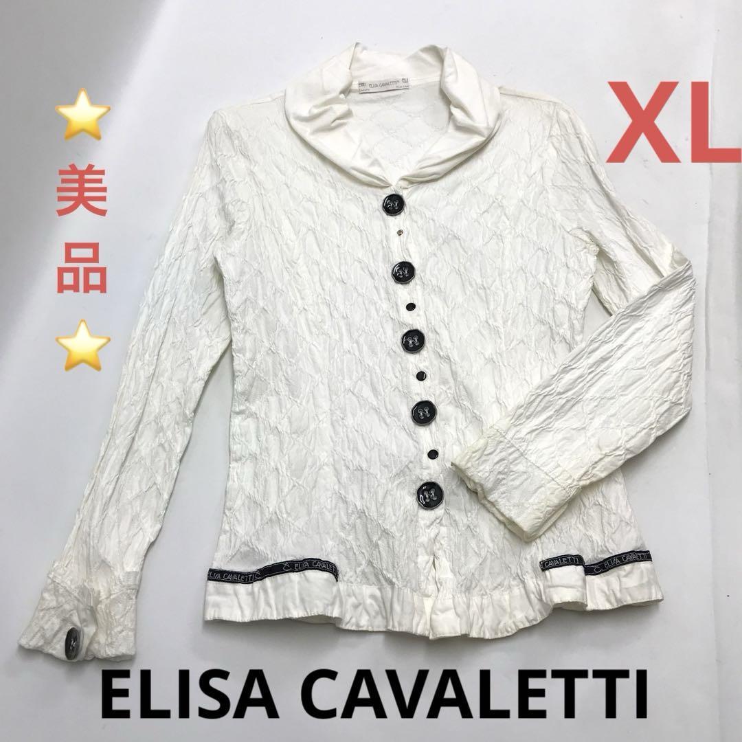 ELISA CAVALETTI エリーザカヴァレッティ コットン ジャケット ホワイト XLサイズ エリサカヴァレッティ 白 レディース アウター トップス 長袖 シワ加工 前開き ボタン開閉 綿 ポリウレタン 襟付き ストレッチ 羽織