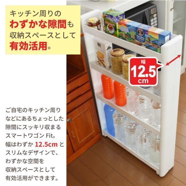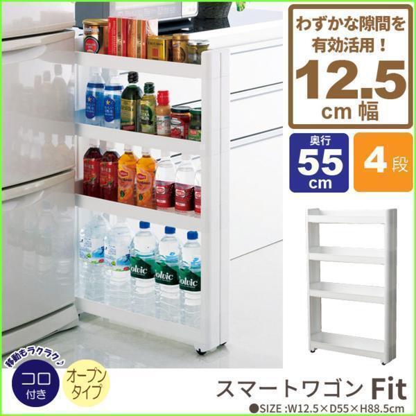 ■キーワード:隙間収納 12cm すきま収納 スリムワゴン 幅12.5cm 奥行55cm 4段 すき間収納 隙間 ストッカー キッチン スリム収納 収納庫 ラック ランドリー トイレ すきま すき間 新生活 一人暮らし