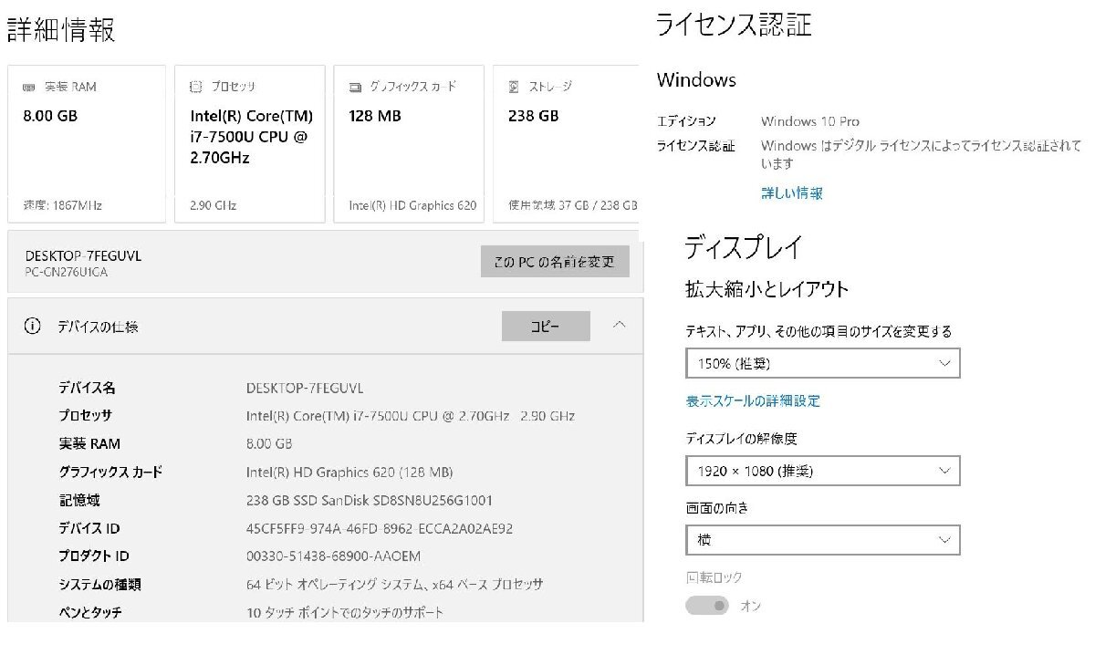 | 商品のコンディション:【 カ 】 ランク ●補足説明 本商品は中古品となります。 写真では分かりにくいキズ・汚れ・欠けなどの使用感があります。 予めご理解・ご了承頂きますようお願いいたします。 キズや落ちない汚れ、へこみ、塗装はがれ等あります。 キーボードにてかりや使用感があります。 標準搭載カメラアプリのみインカメラ動作確認済みです。 バッテリーの寿命や消耗等の状態については保証の対象外となります。ご了承ください。 Office等のソフト、マイクロソフトアカウント、プロダクトキー等は付属しておりません。 ※写真10枚目のような状態で梱包し発送いたします。 ※パソコン専用梱包の為、同梱できません。予めご了承ください。 ▼△▼△▼△▼△▼△▼△▼△▼△▼△▼△▼△▼△▼△▼△▼△▼△▼△▼ ◇ ご入札の前に、以下の点を予めご了承ください ◇ ・中古品の為、新品と同様の状態・使用感は保証いたしかねます。 ・内部のクリーニングは行っておりません。 ・中古品の為、タッチパッドやボタン等の使用感に関しては保証の対象外となります。 ・写真をご覧頂く環境によって機器の色味に若干の差が出ることがございます。 ・写真に写るものが全てとなります。付属品は写真にてご確認ください。 ※ ご了承いただける場合にのみご入札をお願いいたします。 ▼△▼△▼△▼△▼△▼△▼△▼△▼△▼△▼△▼△▼△▼△▼△▼△▼△▼ | ||||||||||||||||||||||
