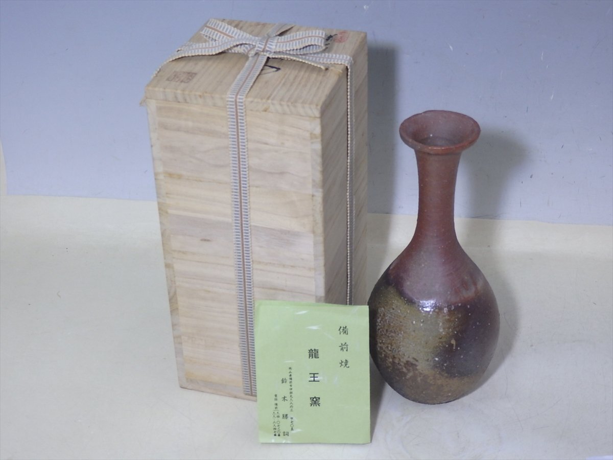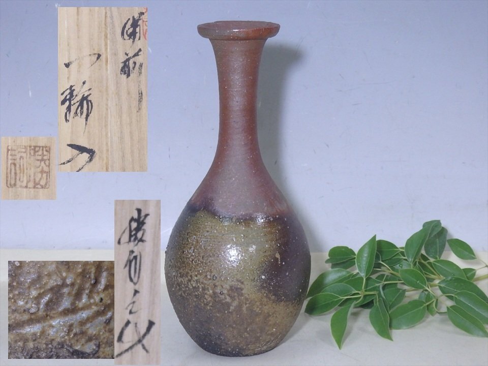 ★状態良好!鈴木勝詞作【備前一輪挿し 共箱】セール! 胴径11cm 高さ25.4cm 口径2cm 茶道具 花瓶 花器 茶器