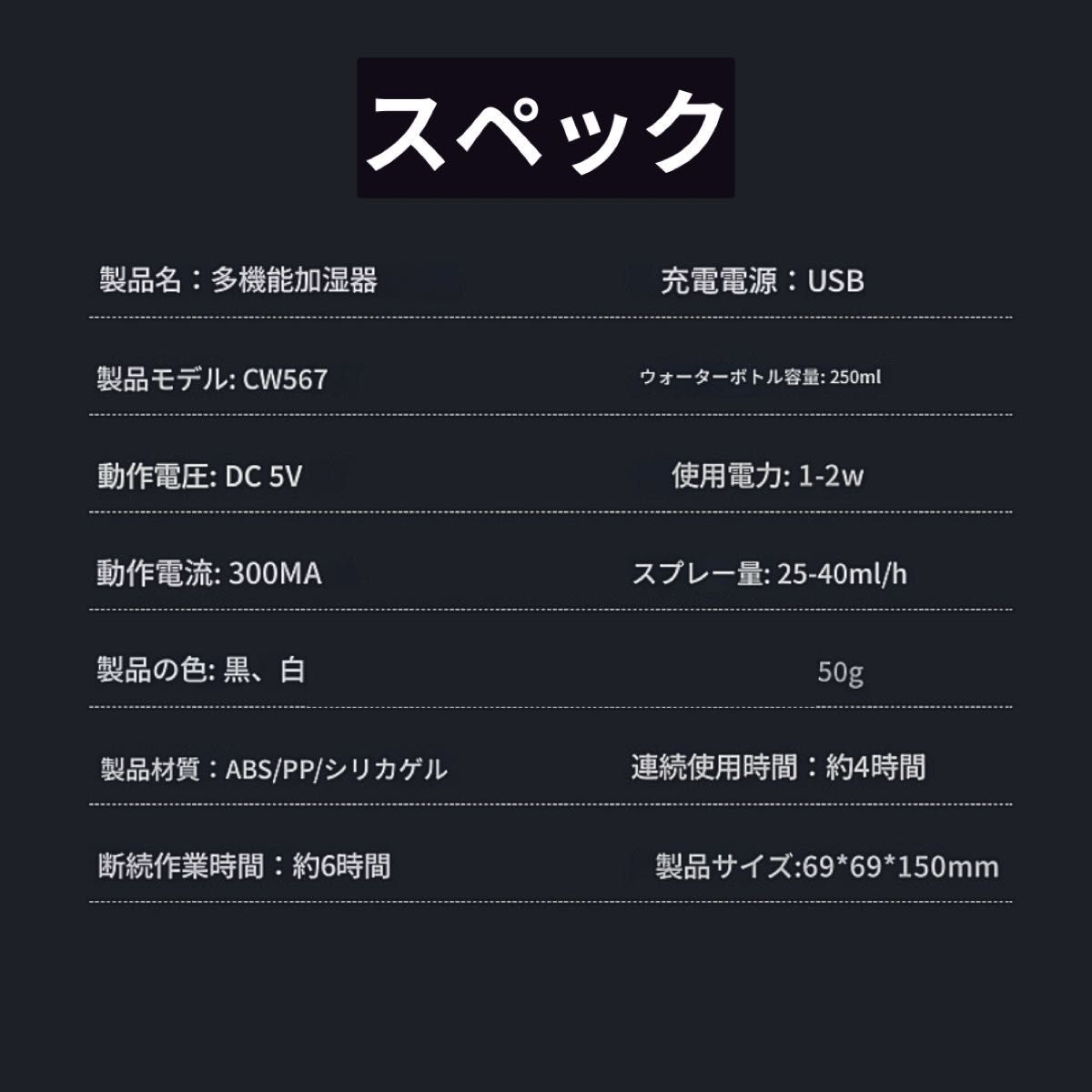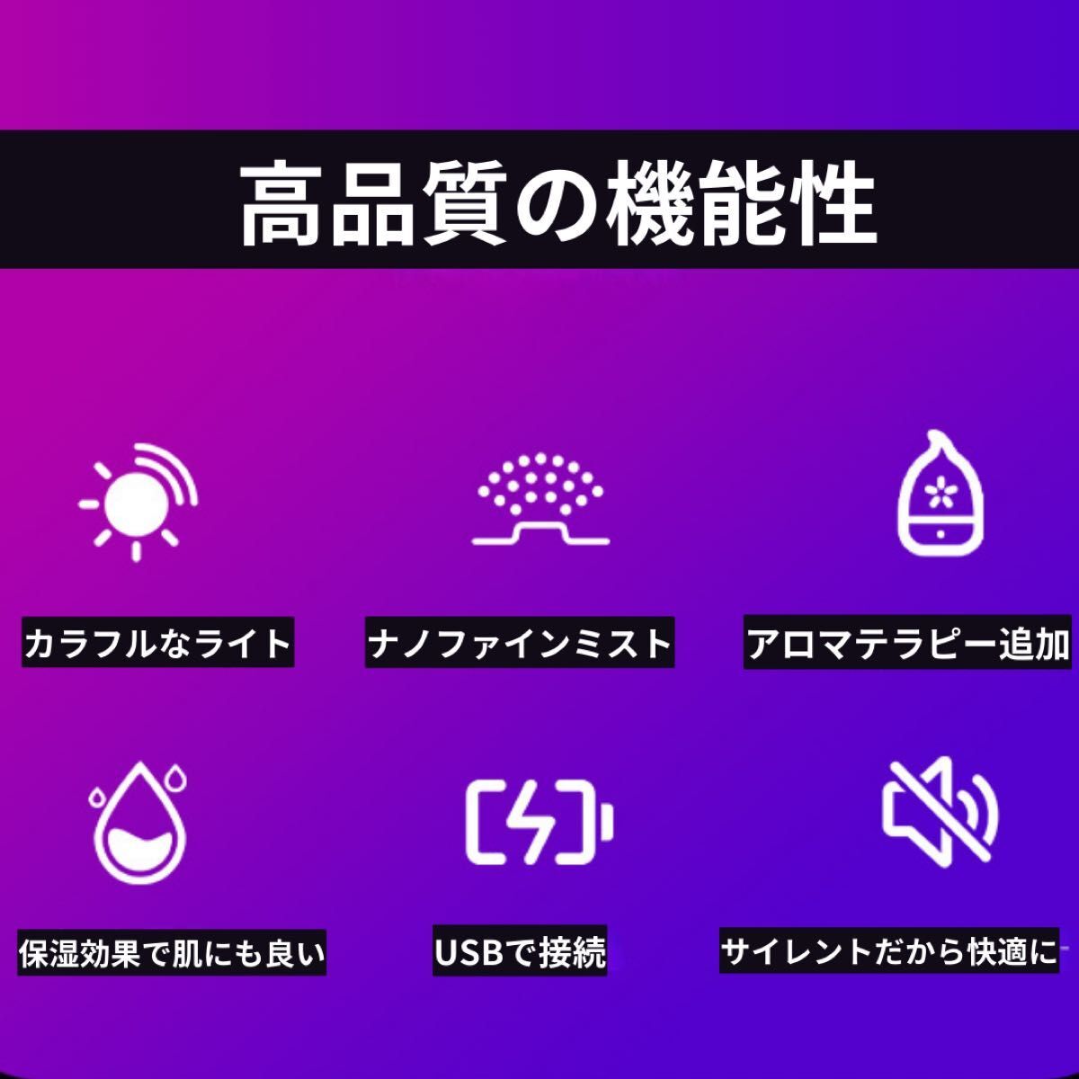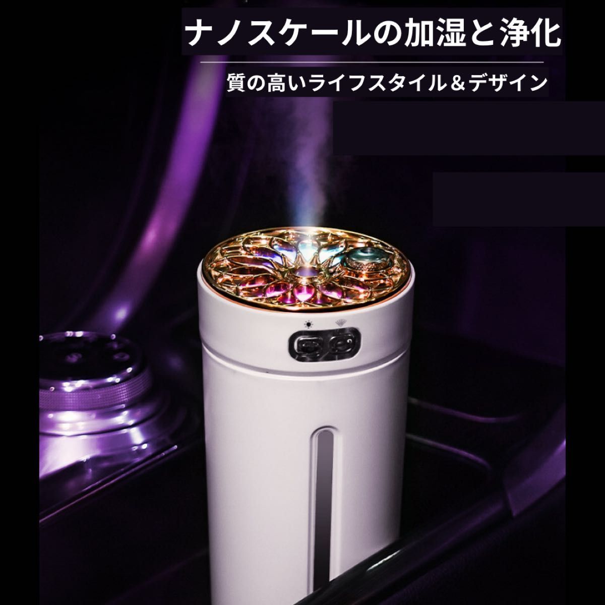 加湿器 LEDイルミネーション 車内アロマディフューザー 充電式 ホワイト