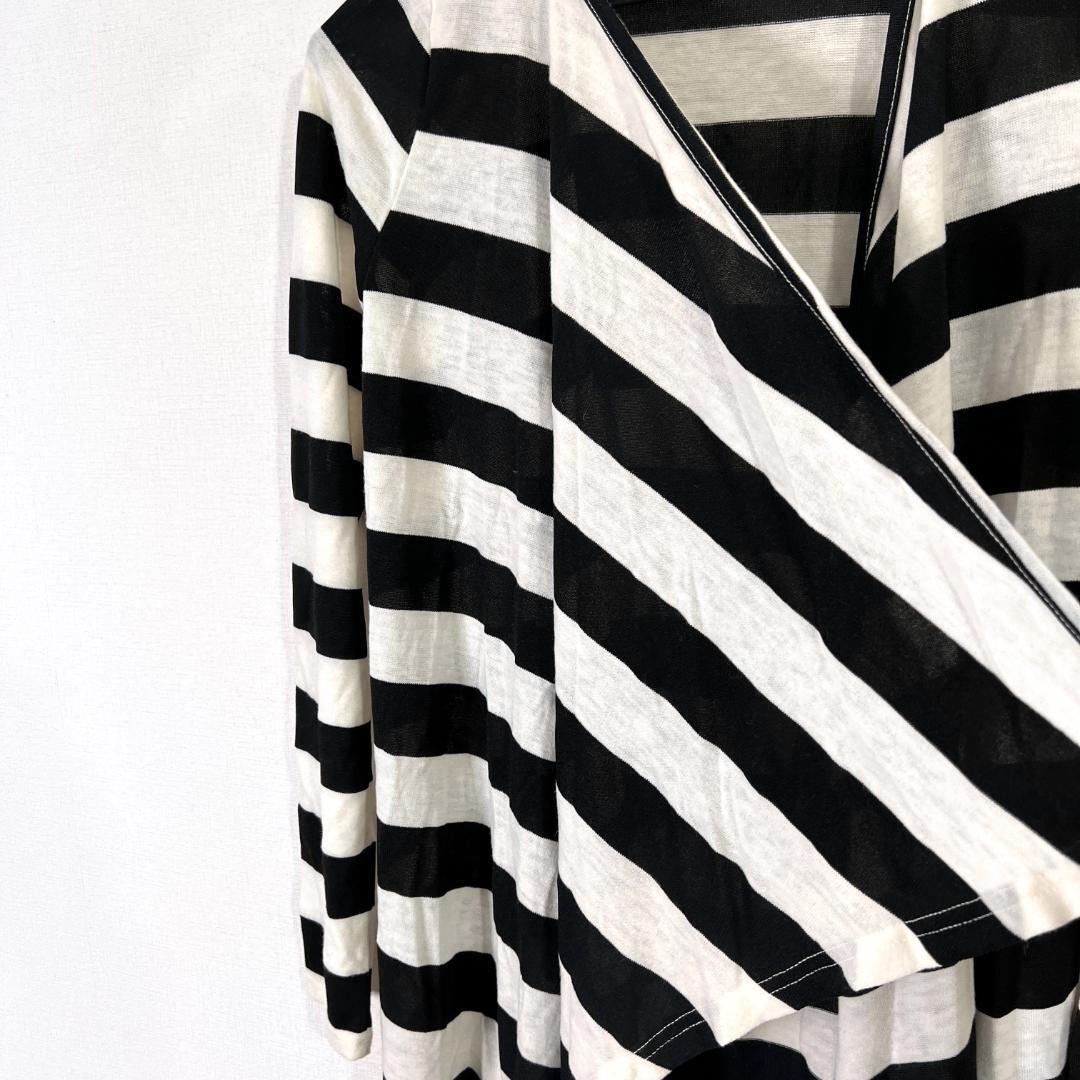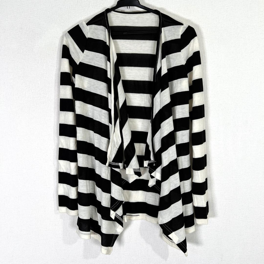 【DURAS】デュラス 白黒 ボーダー ニット カーディガン トップス レディース【a008】
