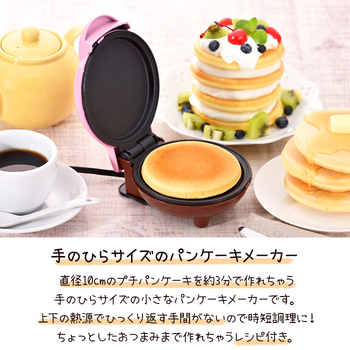 生地を入れて待つだけ!手のひらサイズで使いやすいプチパンケーキメーカー。