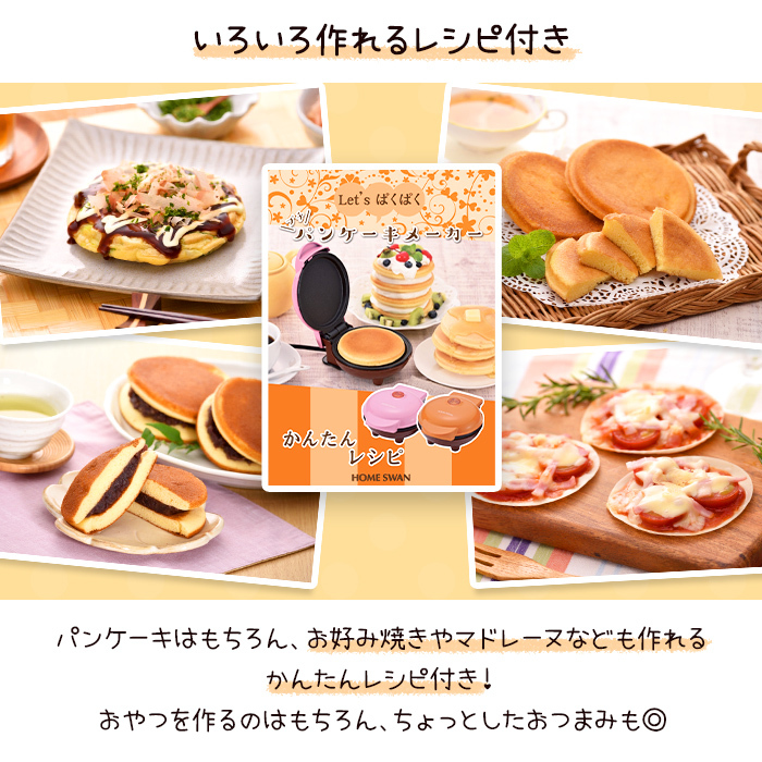 お子様のおやつやパーティーにぴったりで、パンケーキのほかにもお好み焼きやマドレーヌなどが楽しめるかんたんレシピ付き。