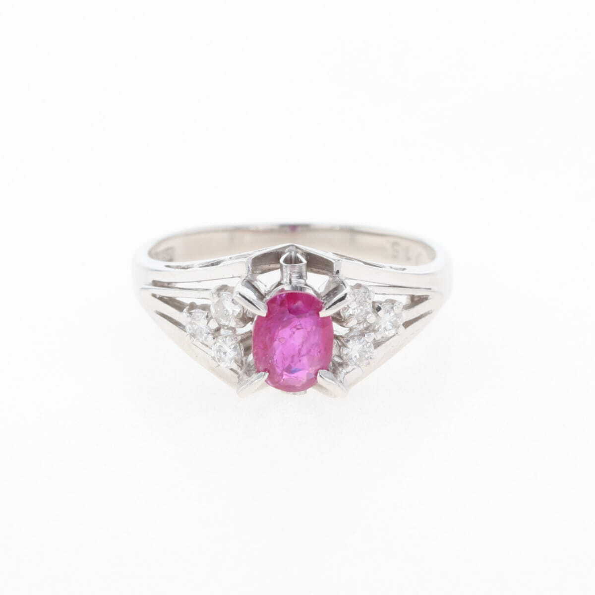 ルビー デザインリング プラチナ 指輪 メレダイヤ リング 10号 Pt850 ルビー ダイヤモンド レディース 【中古】 |