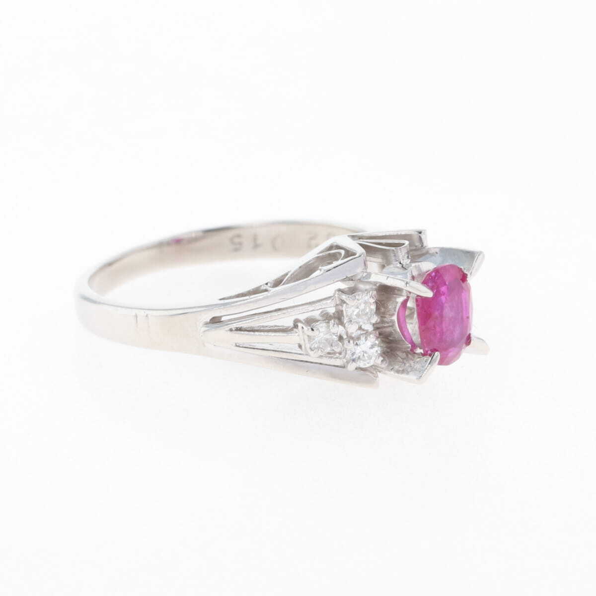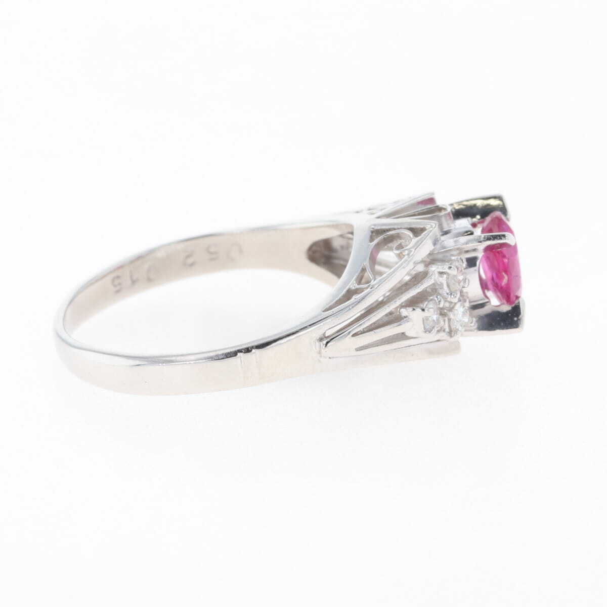 ルビー:0.52ct、メレダイヤ:0.15ct 中古品の為、若干のキズや汚れ、サイズ直しの跡がございます。 |