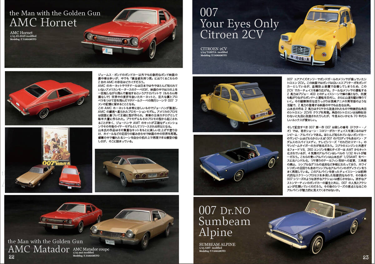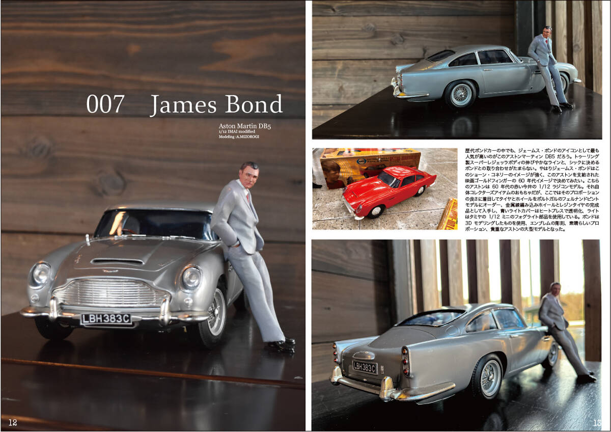 ここからは007大特集。今井の60年代の1/12ラジコンアストンマーティンDB5を使った大型ボンドカー再現に自作3Dフィギュアを添えて。