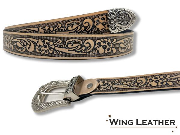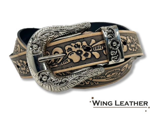 新品 ウエスタン レザー ベルト メンズ 本革 牛革 型押し カウボーイ ベルト プンターレ アメリカン カジュアル ベージュ cnk040-BEIGE