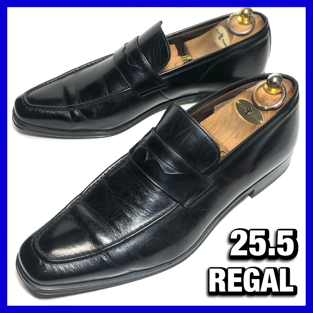 REGAL 25.5cm メンズ 黒 ブラック コインローファー Y920 リーガル ビジネス 革靴 レザーシューズ 本革 ■保管1221