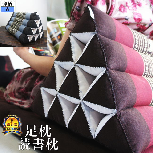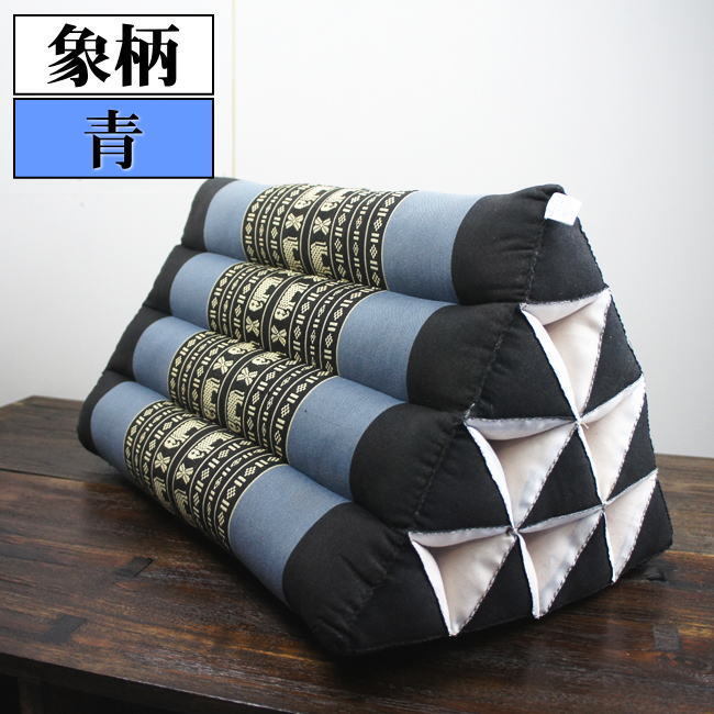 三角枕 三角 クッション 4段 象柄 青 ( 背もたれクッション 足置きクッション 足枕 読書枕 腰痛 ホテル アジアン )