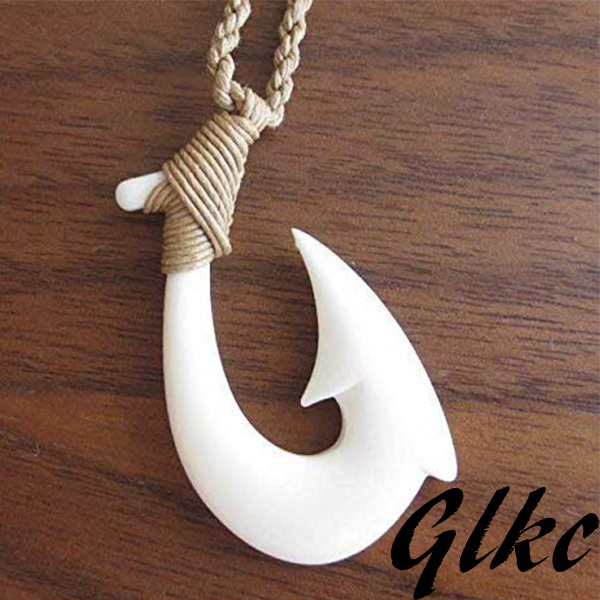 【お守りや幸運を呼ぶアイテム、ハワイアンジュエリー】 骨ネックレス 天然素材 メンズ スピリチュアル お守り フィッシュフック 釣り針