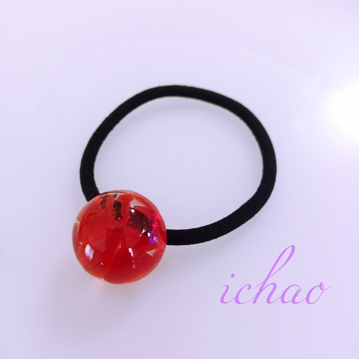 琉球ガラスをレジンで閉じ込めた半球のとっても可愛いヘアゴムです(^^)