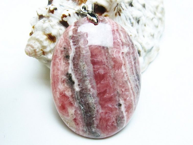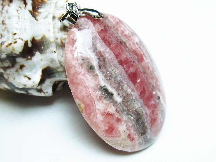 | ■商品名: インカローズ(ロードクロサイト)ペンダント ■商品ID: T313-5749 ■商品重量:約 15.6g ■商品サイズ: 高約:40mm 横約:30mm 厚約:6mm 【インカローズ(ロードクロサイト)】 インカローズの正式な鉱物名は「ロードクロサイト」と呼び、「インカローズ」はインカ帝国の栄えたアンデス山脈から産出されるバラ色の石という意味を持つ流通名です。 インカローズはピンクや赤の地色に白色の縞模様が入っているのが特徴で、赤みが強く透明度の高いものほど価値が高いとされます。 加工することによって模様がバラが咲いたように見えることから、インカローズはアクセサリーとして特に女性から絶大な人気を誇っています。 「情熱の薔薇」とも呼ばれるインカローズは、出会うべき人や前世からの繋がりを持ったソウルメイトを引き寄せて運命的な出会いと愛情に満ちた生活をもたらすとされています。 またヒーリング効果も高く、癒しの効果はローズクォーツよりも強力かつ即効性が高いとされ、些細なことに悩みがちだったり傷つきやすいという方には優しくも心強いサポートが得られるでしょう。 ⇒ インカローズをもっと詳しく ◆ワンポイント情報 インカローズは硬度が3.5~4と低いために傷つきやすかったり、日光に長時間当たることで褪色しやすいなど、繊細な石でもあります。取り扱いや保管には十分に注意してください。 |