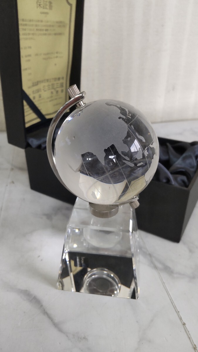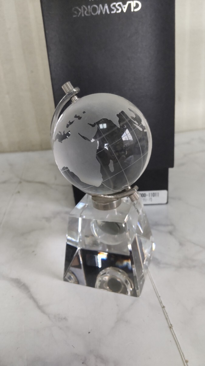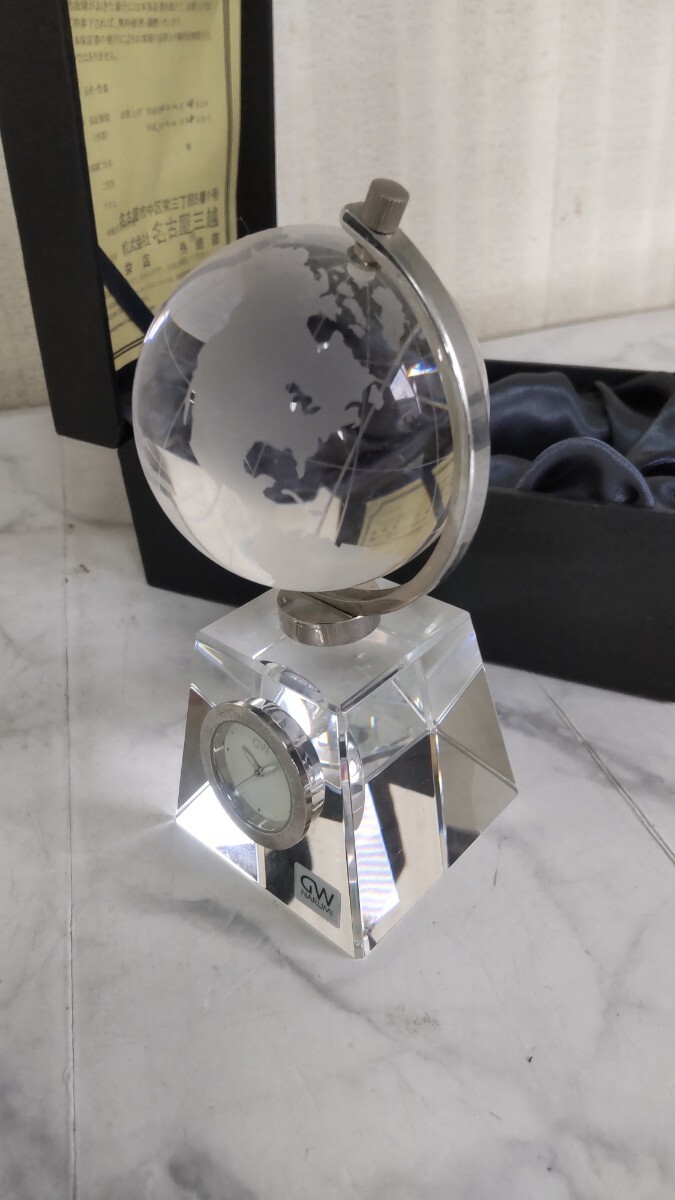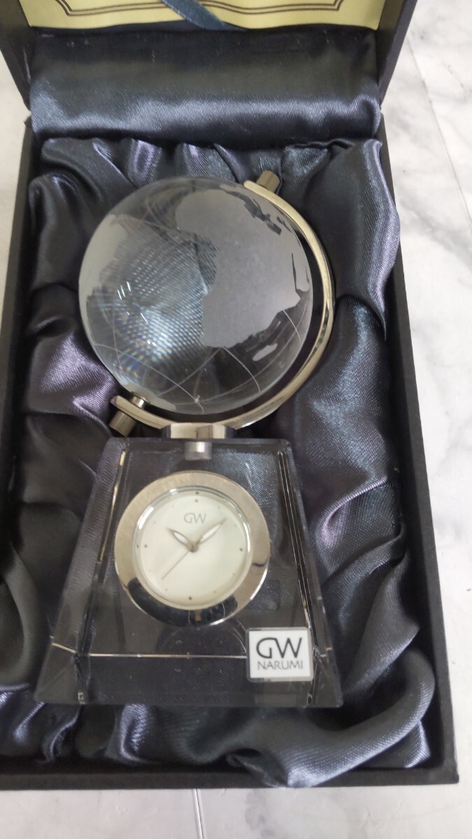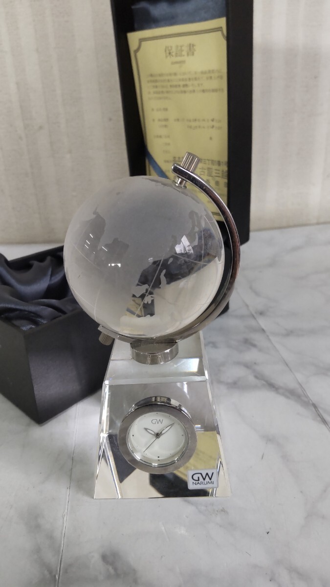 S3403 GLASS WORKS/ NARUMI/地球儀/置き時計/クリスタル 時計/箱入り/ナルミ 現状品