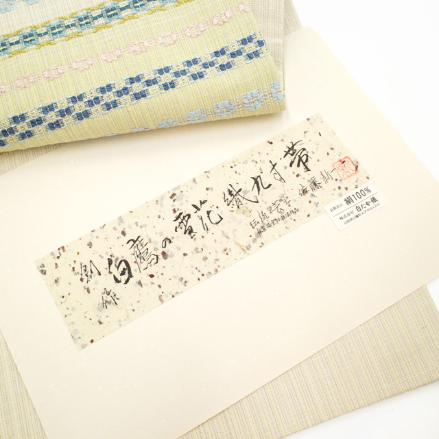 伝統工芸士・佐藤新一 作、白鷹の雪花織 名古屋帯をご紹介いたします。