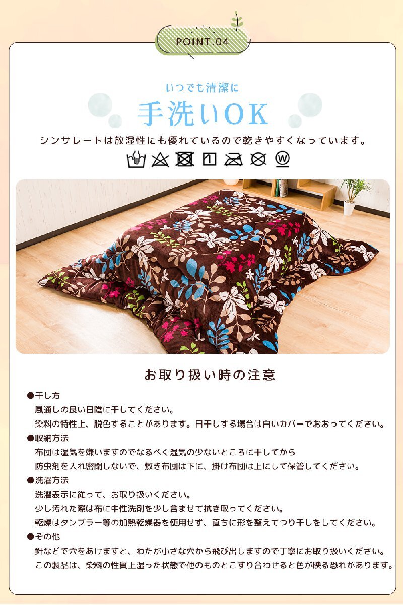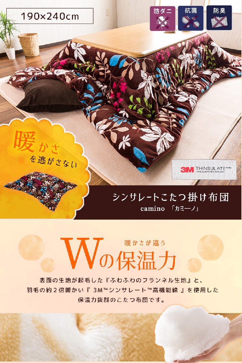 こたつ布団 掛け布団 シンサレート こたつ コタツ 190×240cm 長方形 防ダニ 抗菌 防臭 フランネル フリース 断熱 保温 あったか
