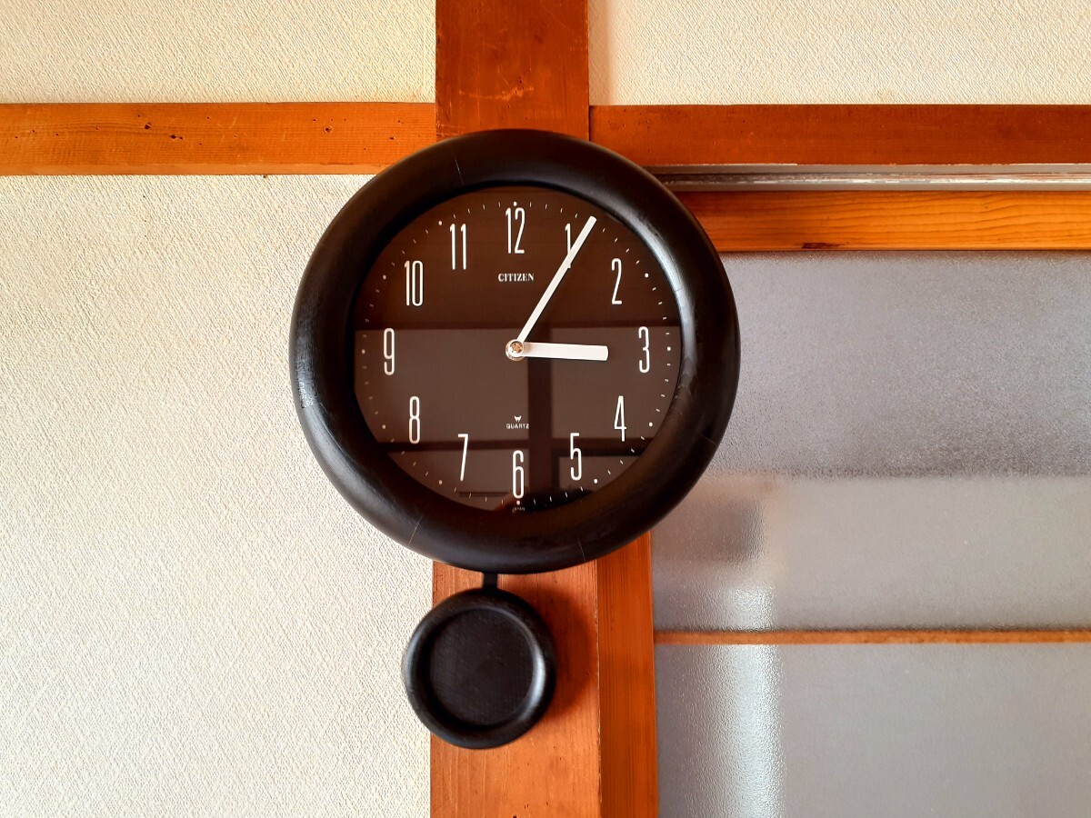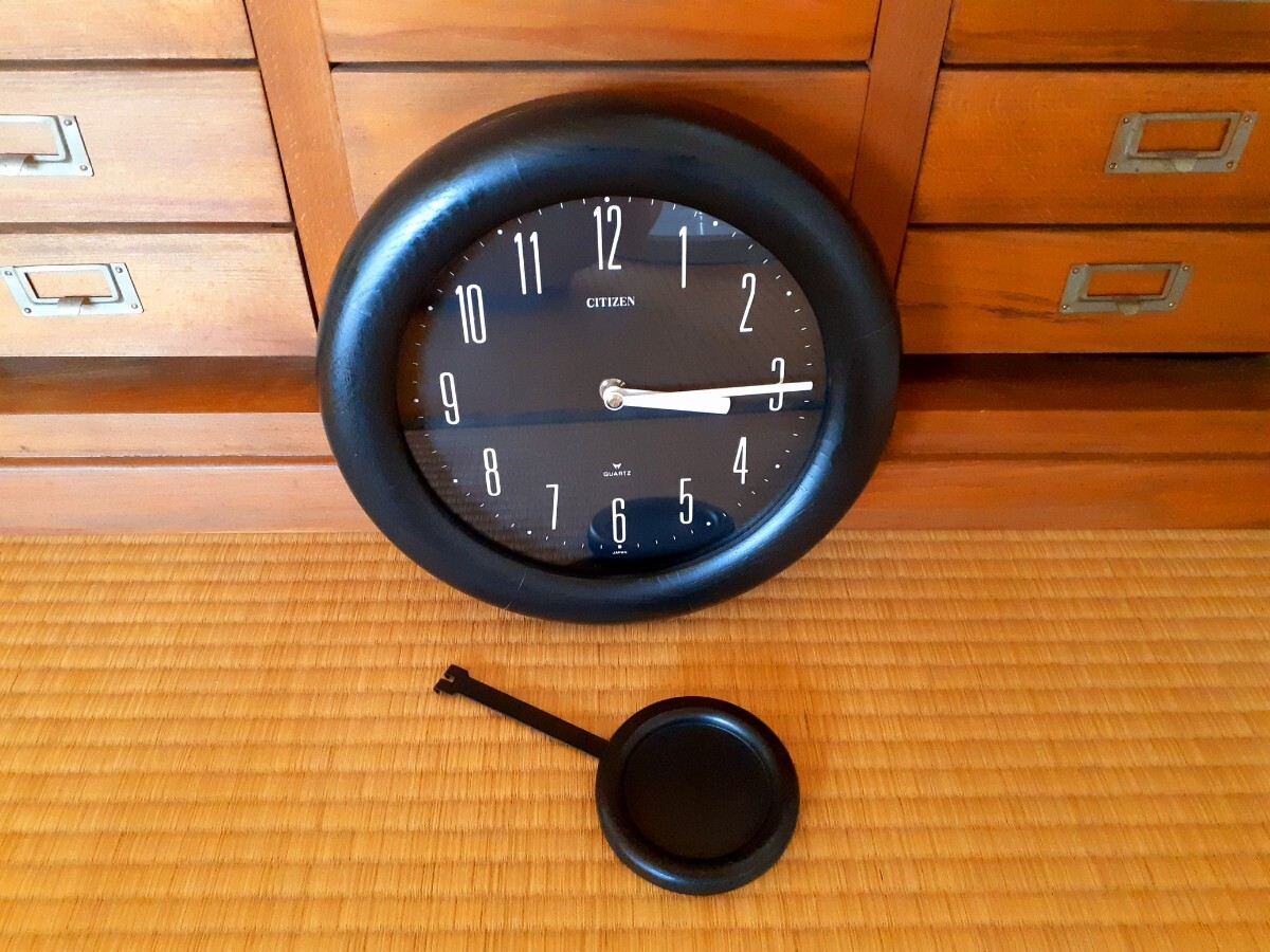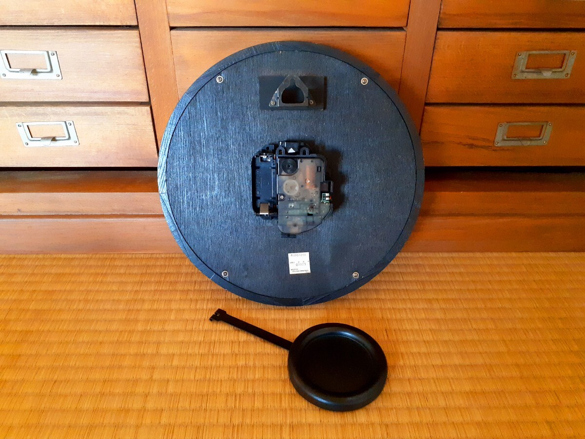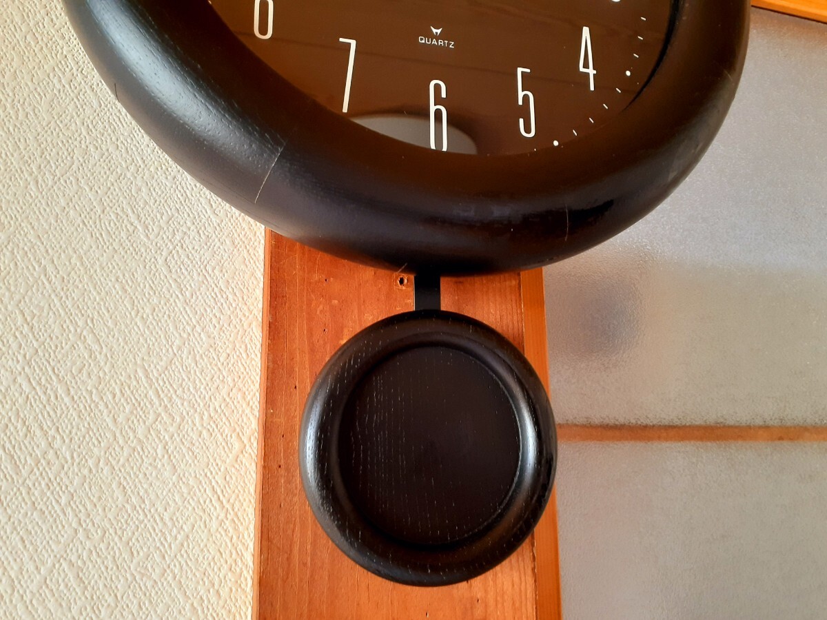 色濃く感じるジャパニーズプロダクト。ブラックのボディーに時間と共に動く振り子が印象的です。