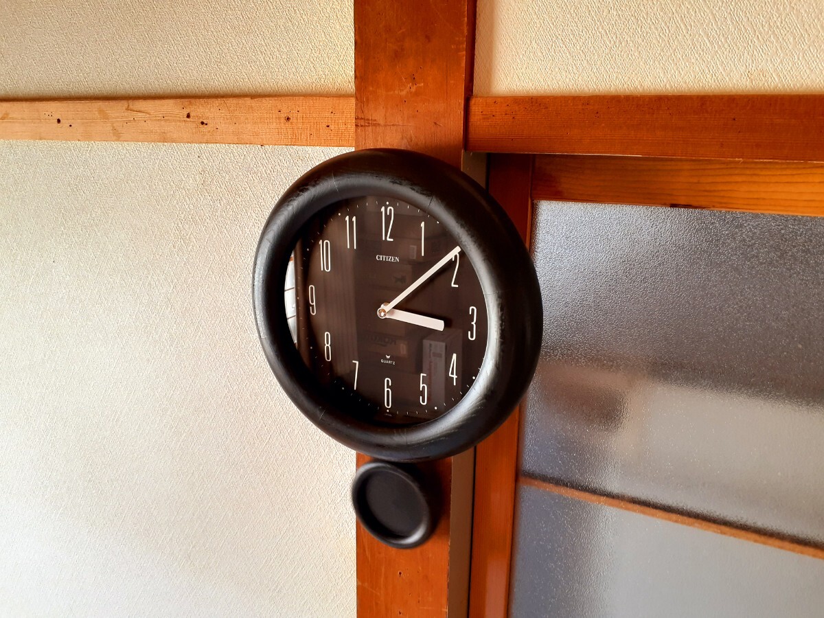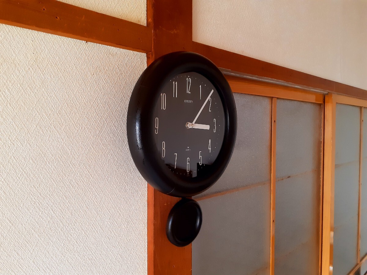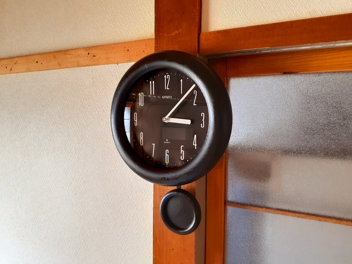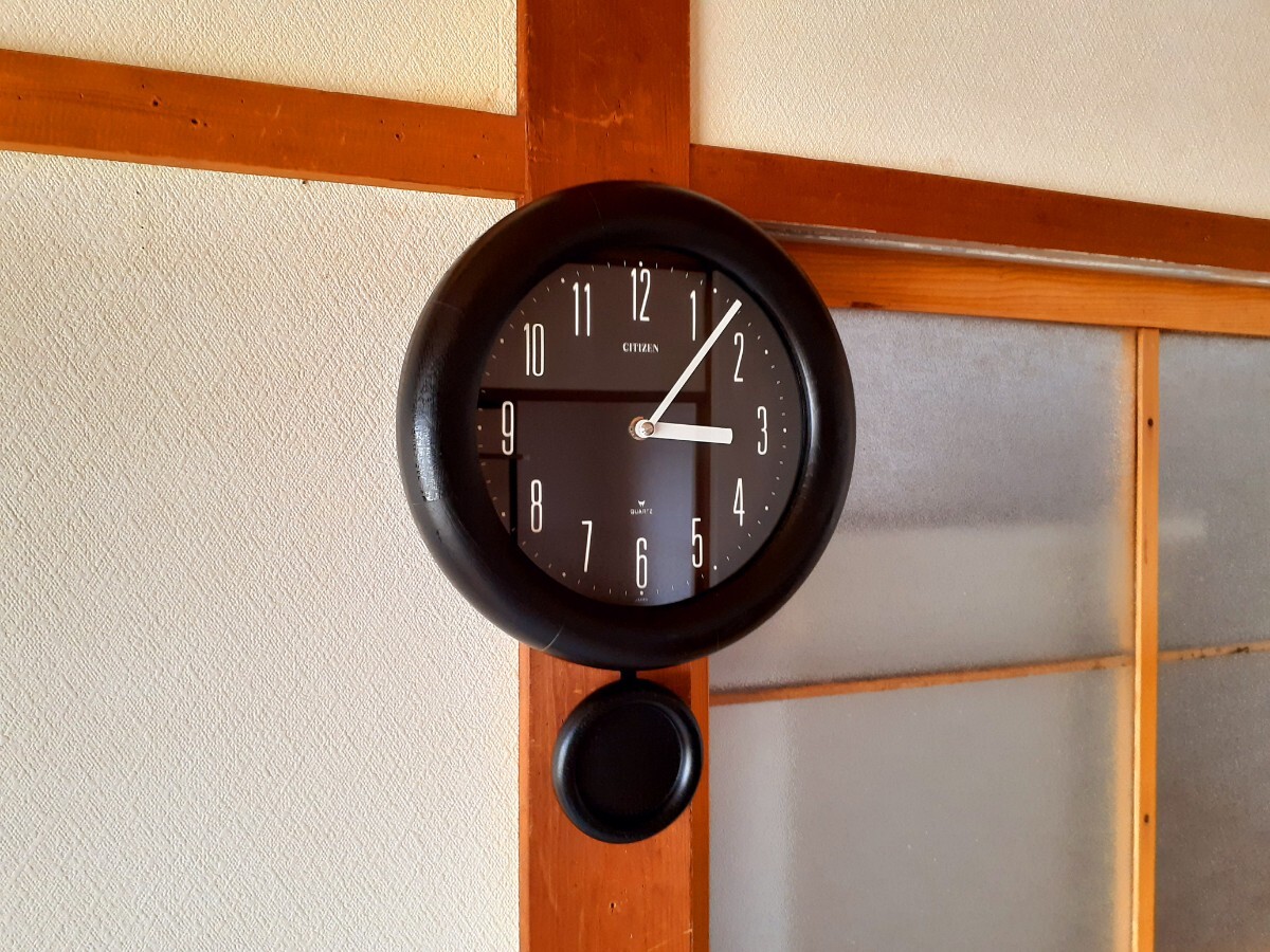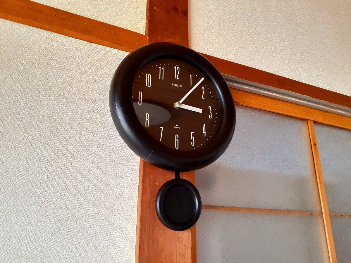 色濃く感じるジャパニーズプロダクト。ブラックのボディーに時間と共に動く振り子が印象的です。