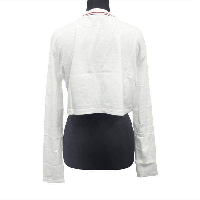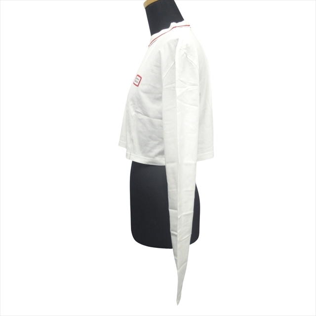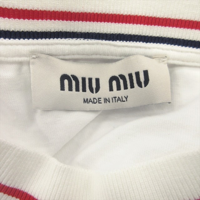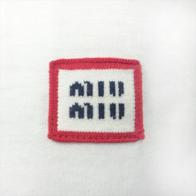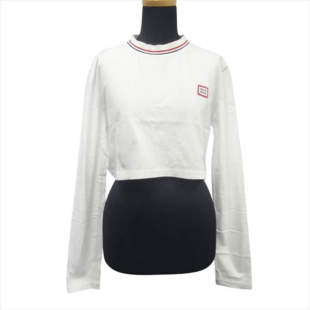 美品 22aw ミュウミュウ miumiu クロップド ロング Tシャツ カットソー 長袖 ロゴ ワッペン トリコロール S 白 ホワイト レディース