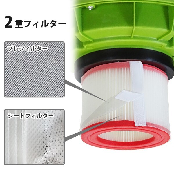 プレフィルターとメインフィルター部分の2重構造になっており、大きなダストはプレフィルターが、細かなチリはメインフィルターが遮断します。