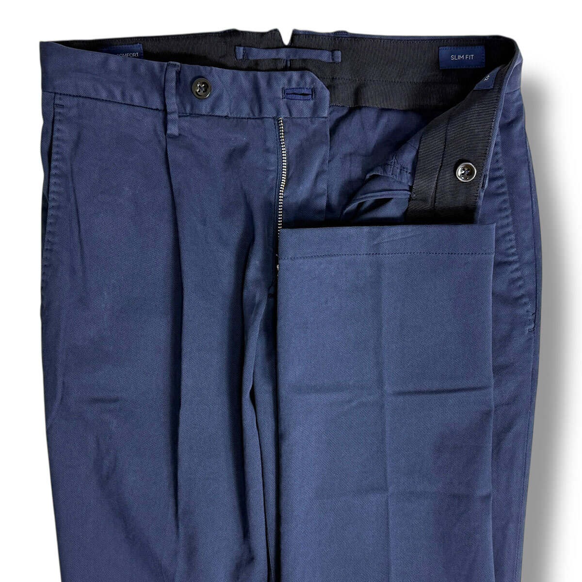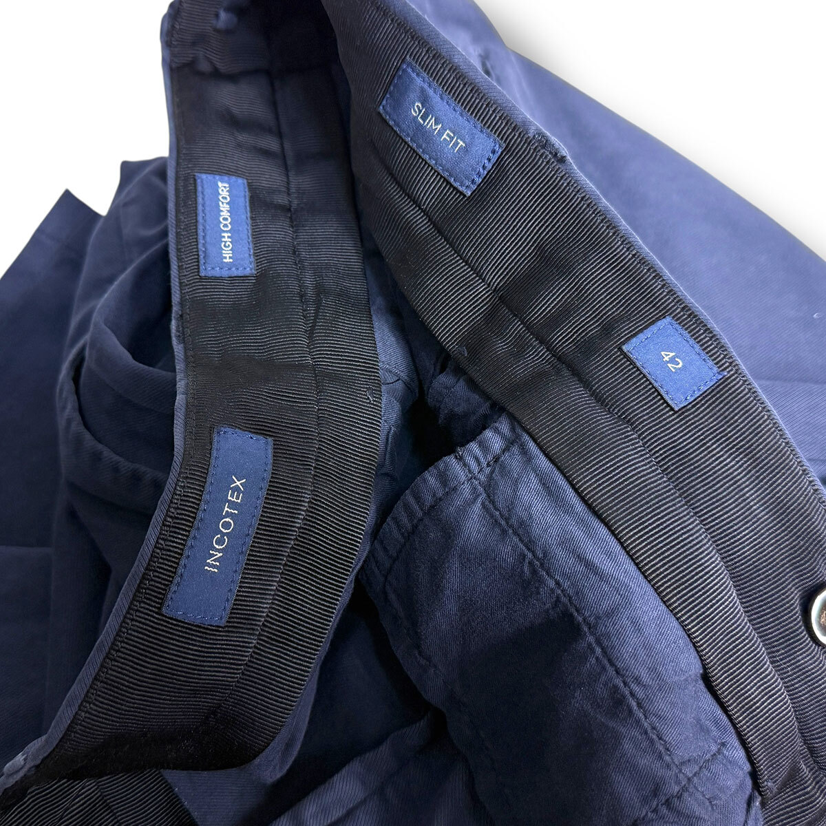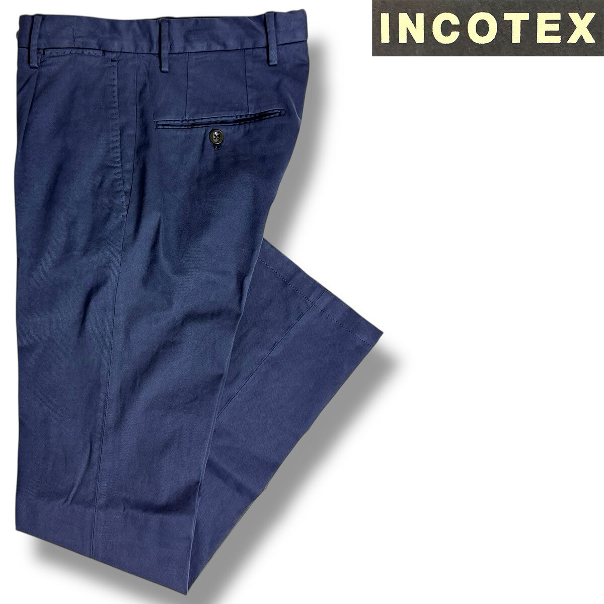 J6159 美品 インコテックス 現行 1W0N24 SLIM FIT ガーメントダイコンフォート1プリーツツイルパンツ ネイビー 42 INCOTEX