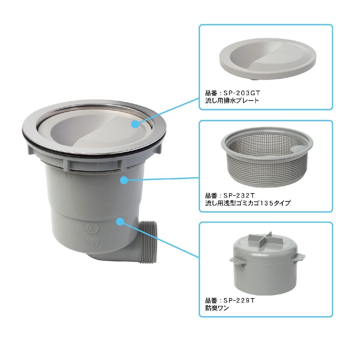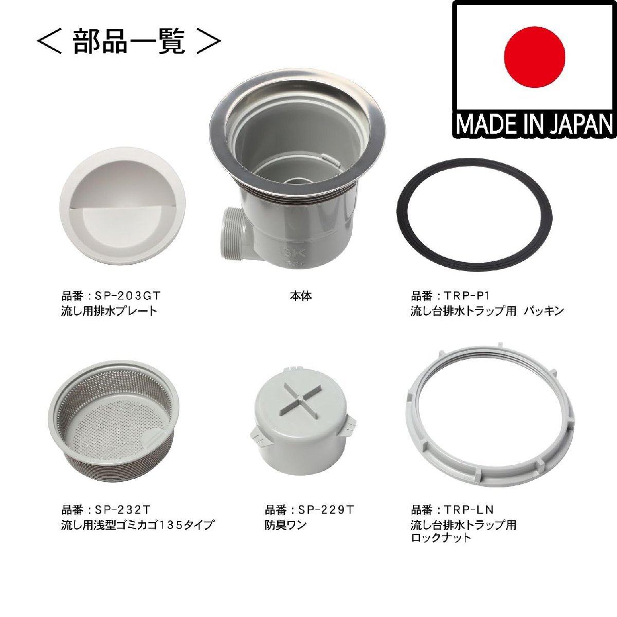 材質/【本体】ポリプロピレン(口金:ステンレス)、【ロックナット】ABS樹脂、【ゴムパッキン】NBR、【排水プレート】【浅型ゴミカゴ】【防臭ワン】ポリプロピレン