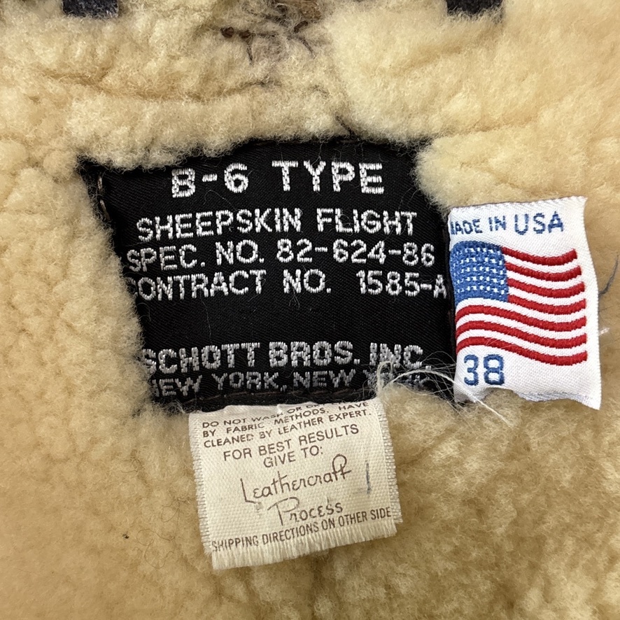 USA製 SCHOTT ショット B-6 本革 シープスキン ムートン フライトジャケット レザージャケット ボマー ボンバー メンズ 38 M-L相当 D195
