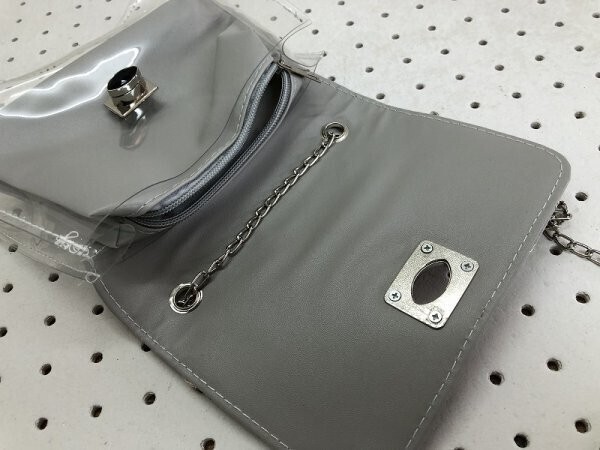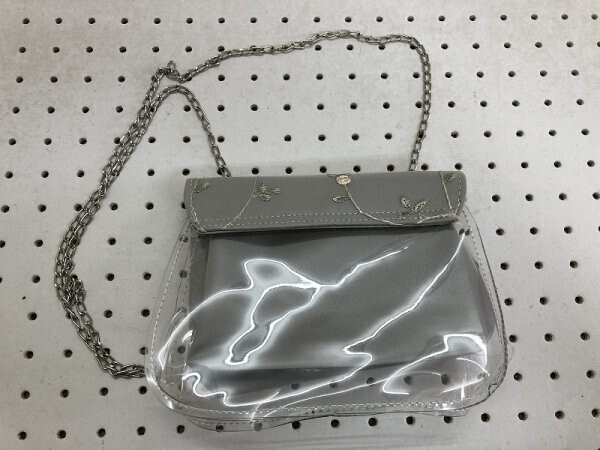 花刺繍 レディース ビニール ミニショルダー 薄いグレー です。