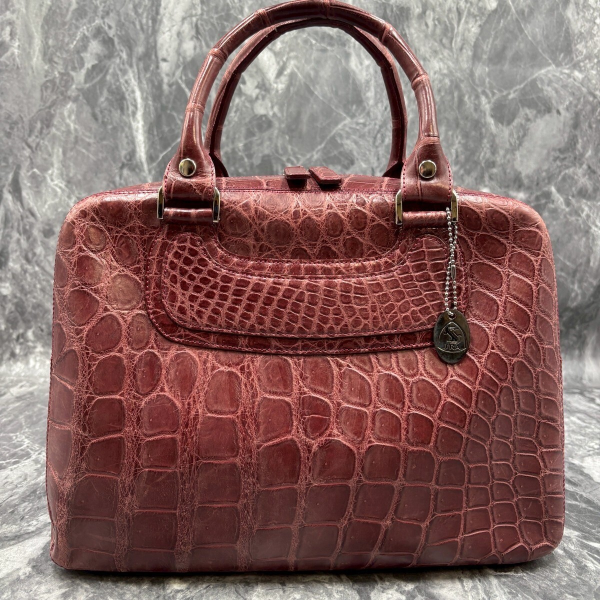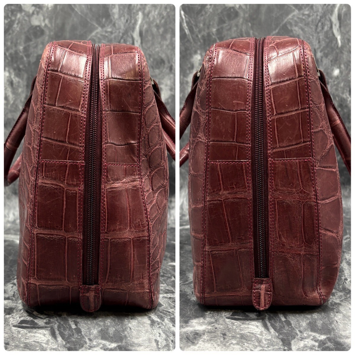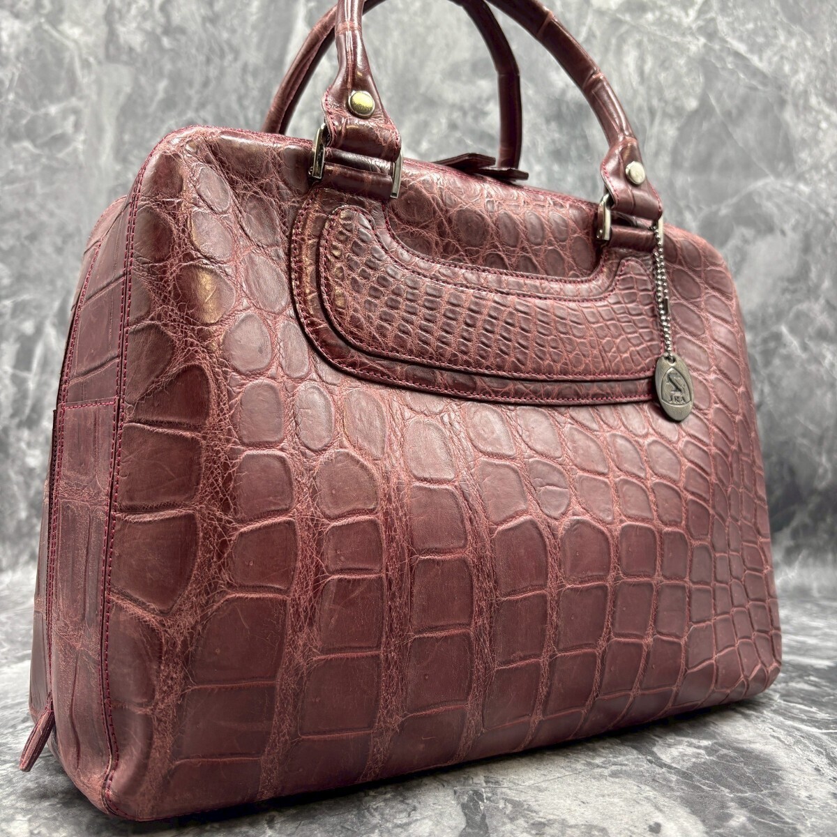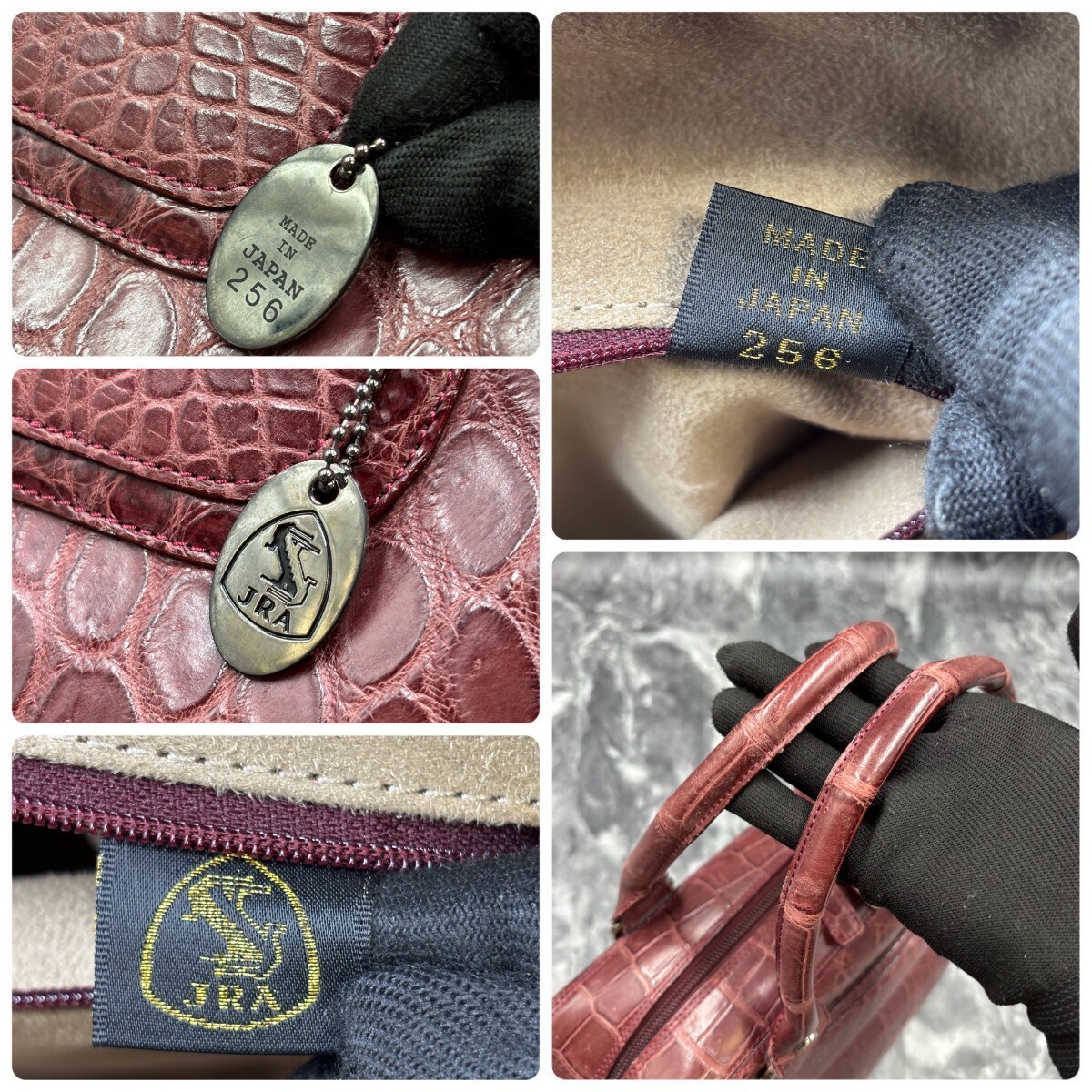 JRA【美品】クロコ クロコダイル マットクロコ ハンドバッグ ボストンバッグ エキゾチックレザー A4 自立 本革 鰐皮 日本製 ワインレッド