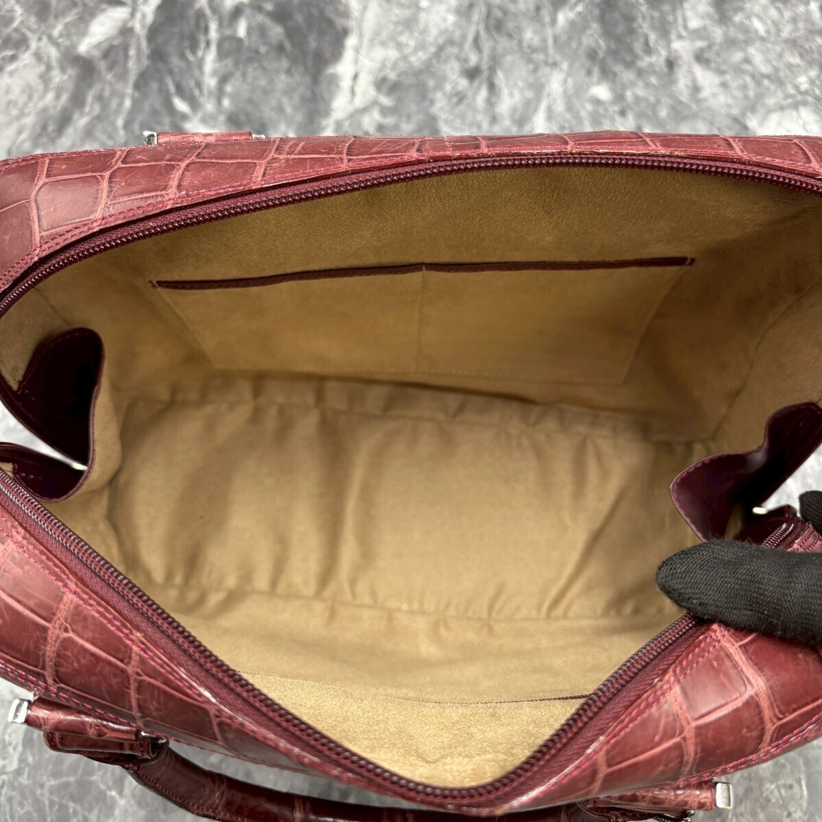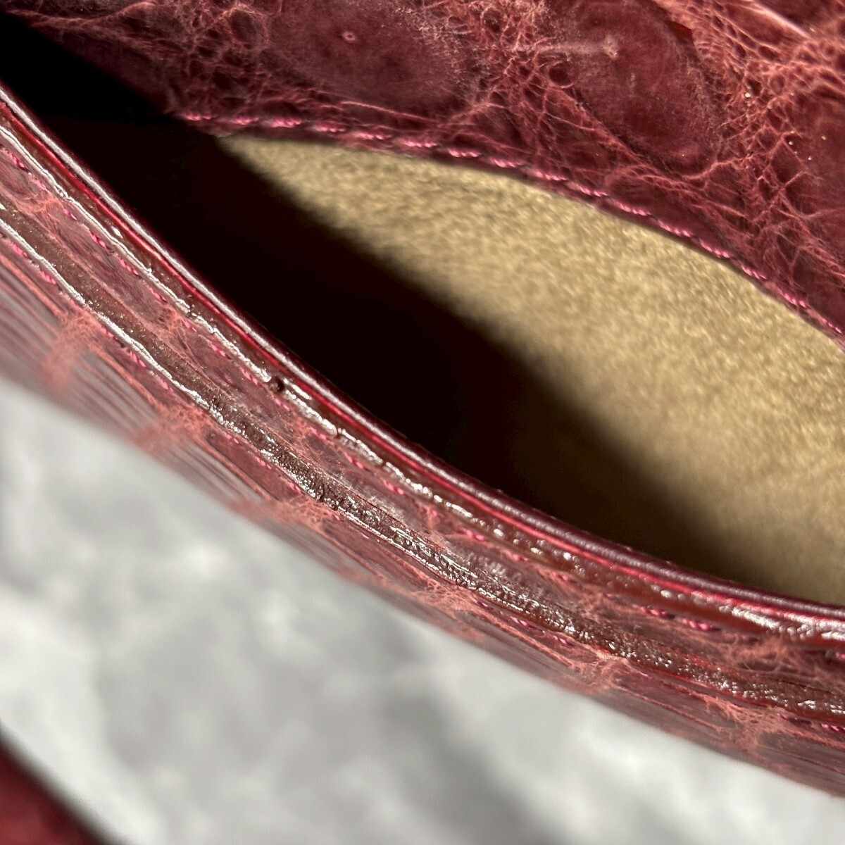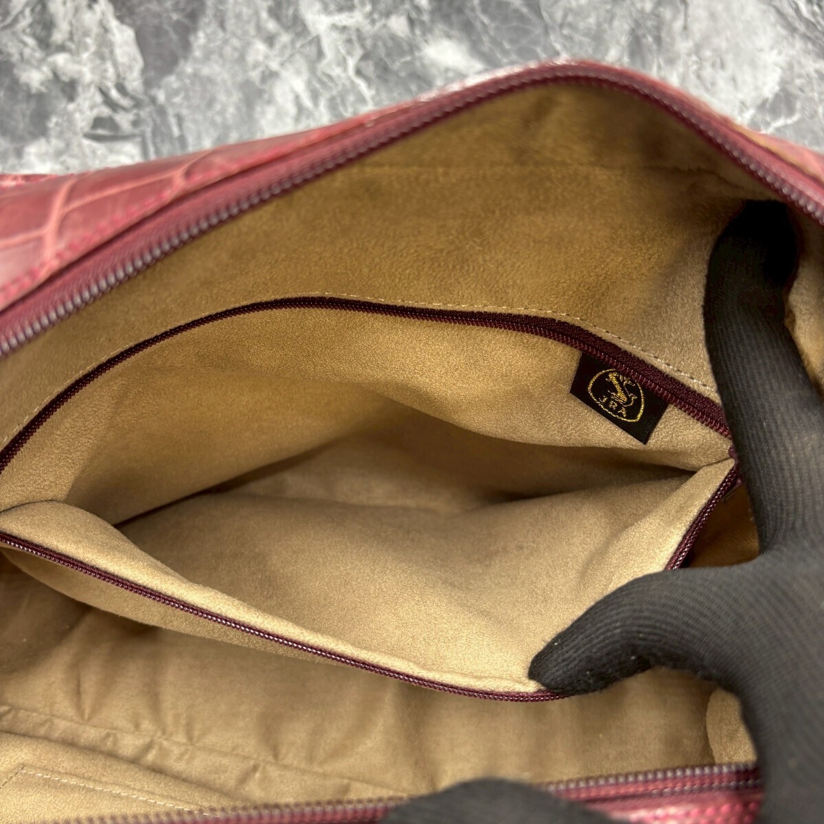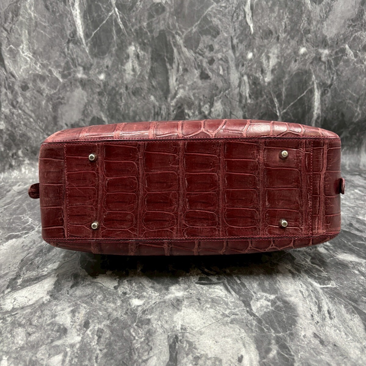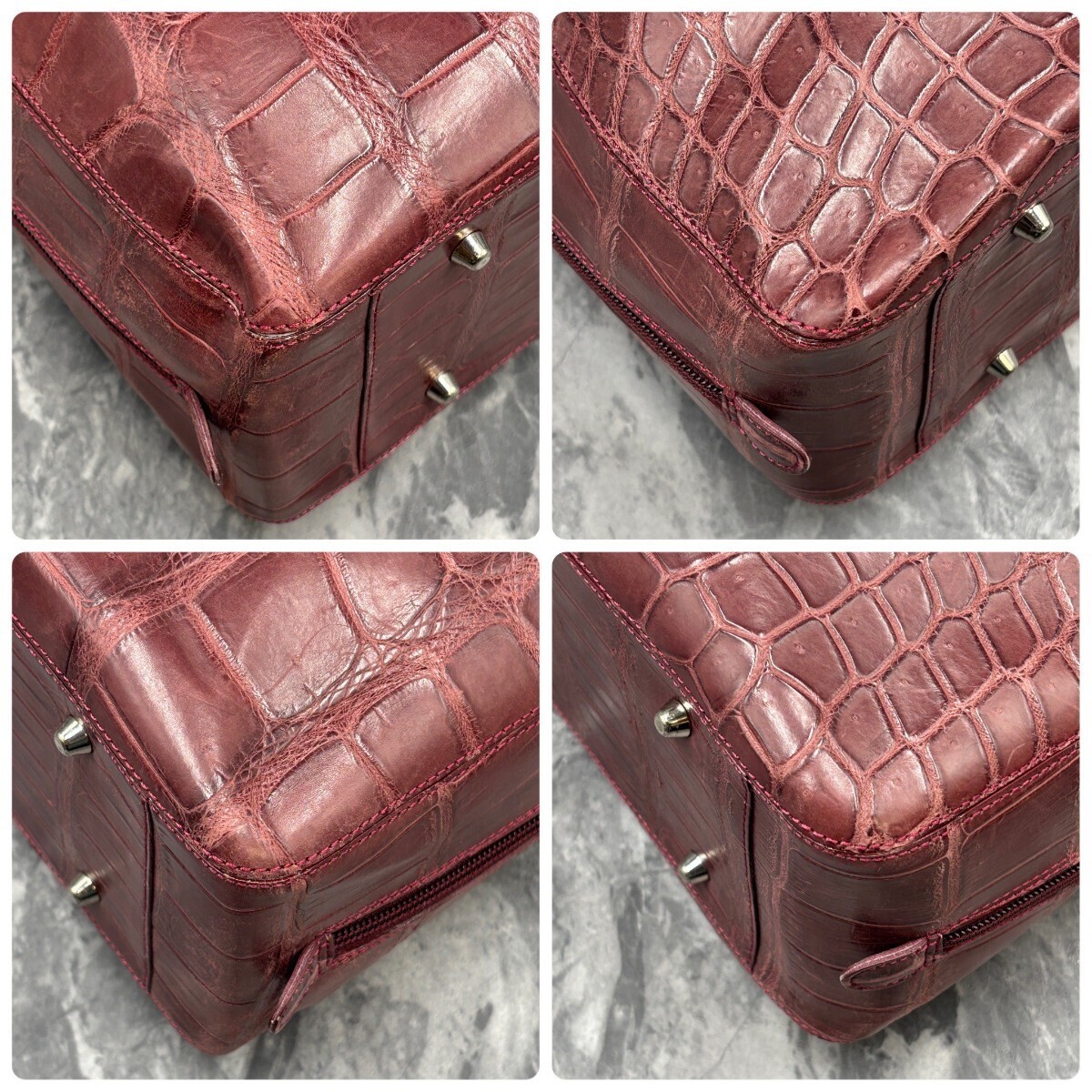 JRA【美品】クロコ クロコダイル マットクロコ ハンドバッグ ボストンバッグ エキゾチックレザー A4 自立 本革 鰐皮 日本製 ワインレッド