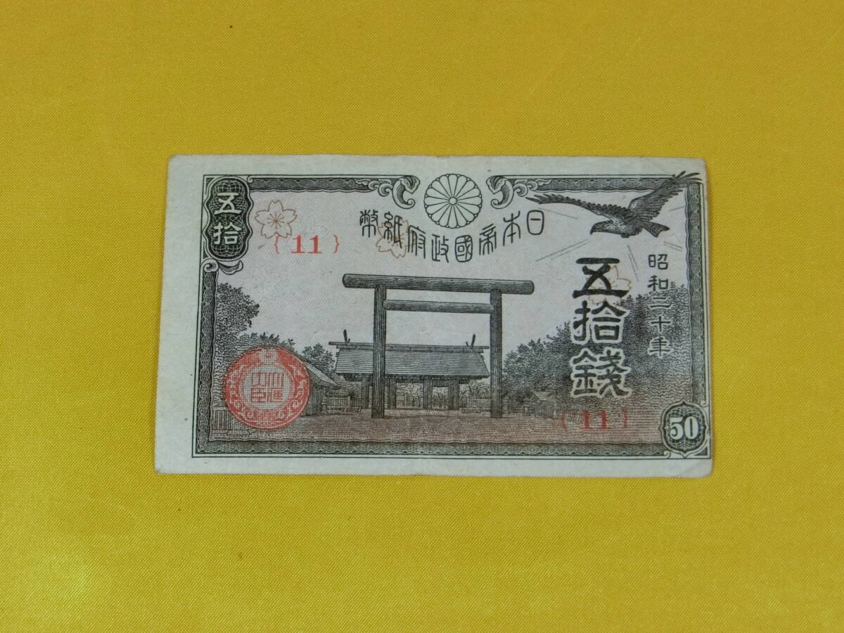 ☆古紙幣☆ 日本銀行券 五拾銭札 靖国