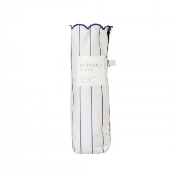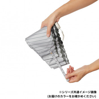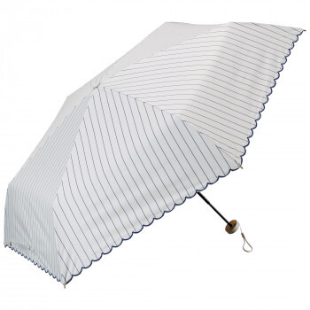 | 開くと通常サイズ、たたむとコンパクトです。UVカット率99.9%、高い遮光・遮熱性。マルシェの屋根をイメージしたパターン。細いストライプと裾の刺繍が繊細でこだわりのあるデザインです。 |