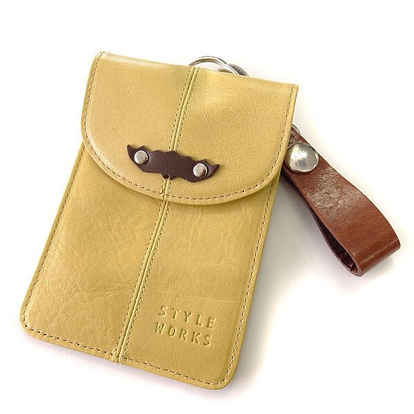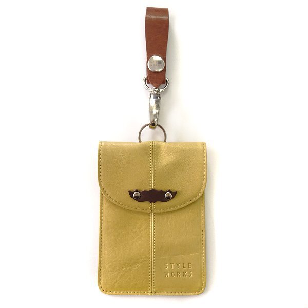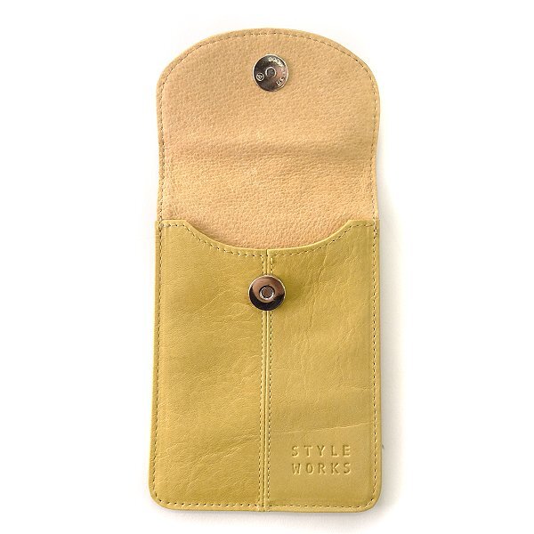 ※展示品の為、外箱が破損している場合がございます。また、天然皮革のため軽微な擦れが付いておりますので、予めご了承下さい。※ 【本体】 縦:13cm 幅:8.8cm 【ストラップ】 長さ:11cm(金具部分含む) 牛革 イエロー系 |
