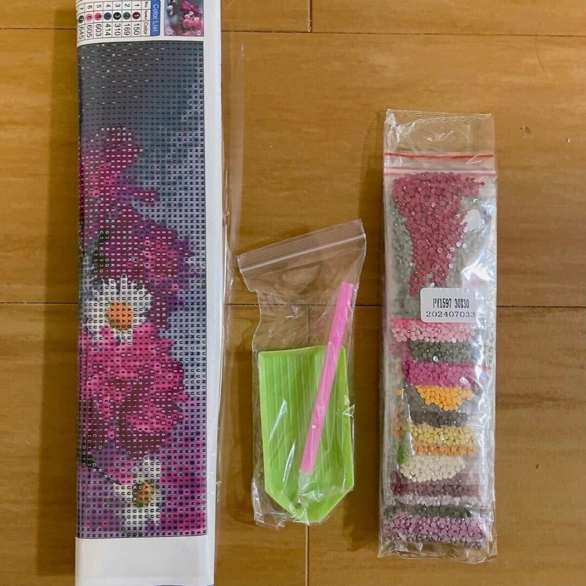 届いたら直ぐに制作できるダイアモンドアートの材料&道具付きキットです!