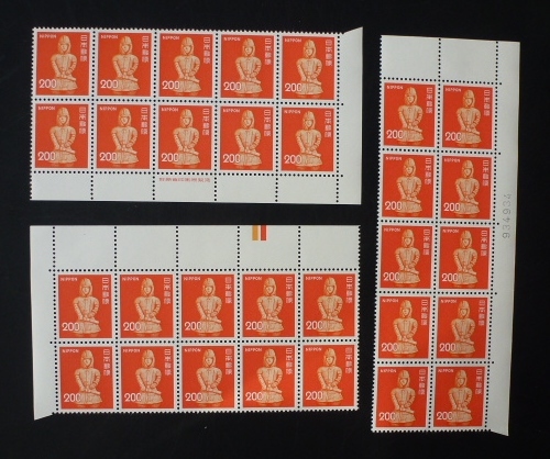 200円 はにわ カラー上と銘版 計数番号 各10枚ブロック   完美品  未使用 。