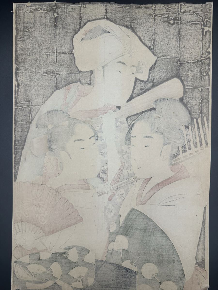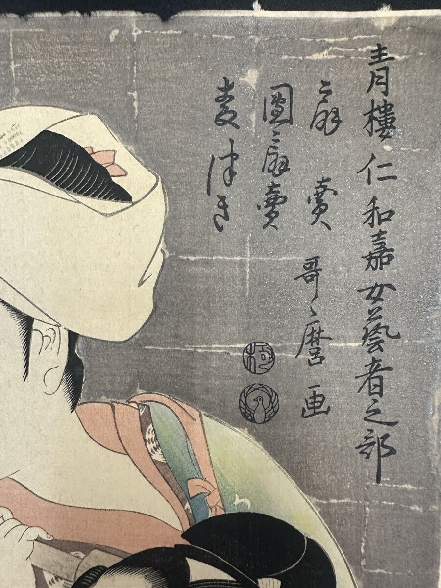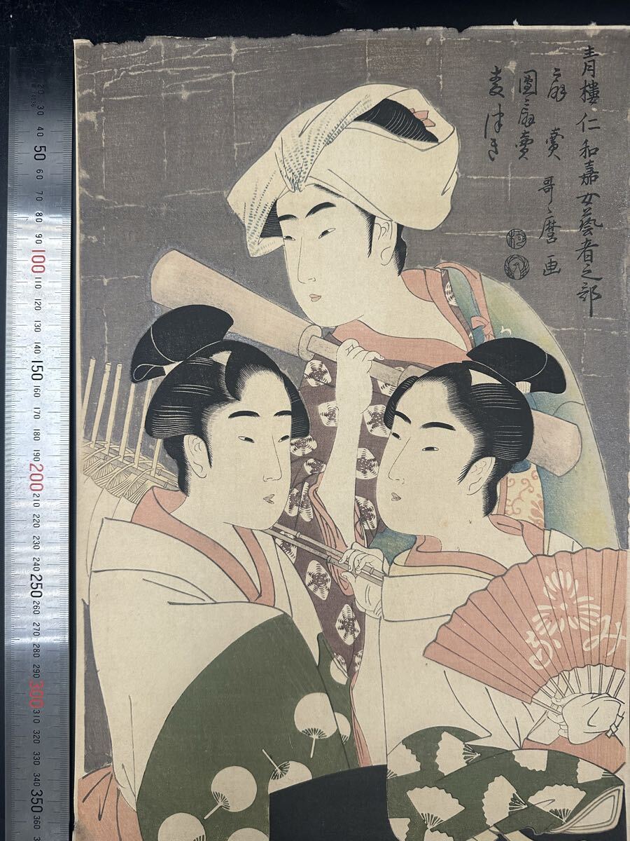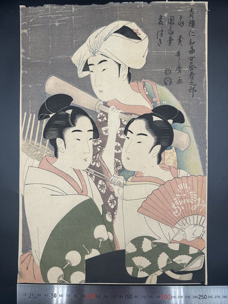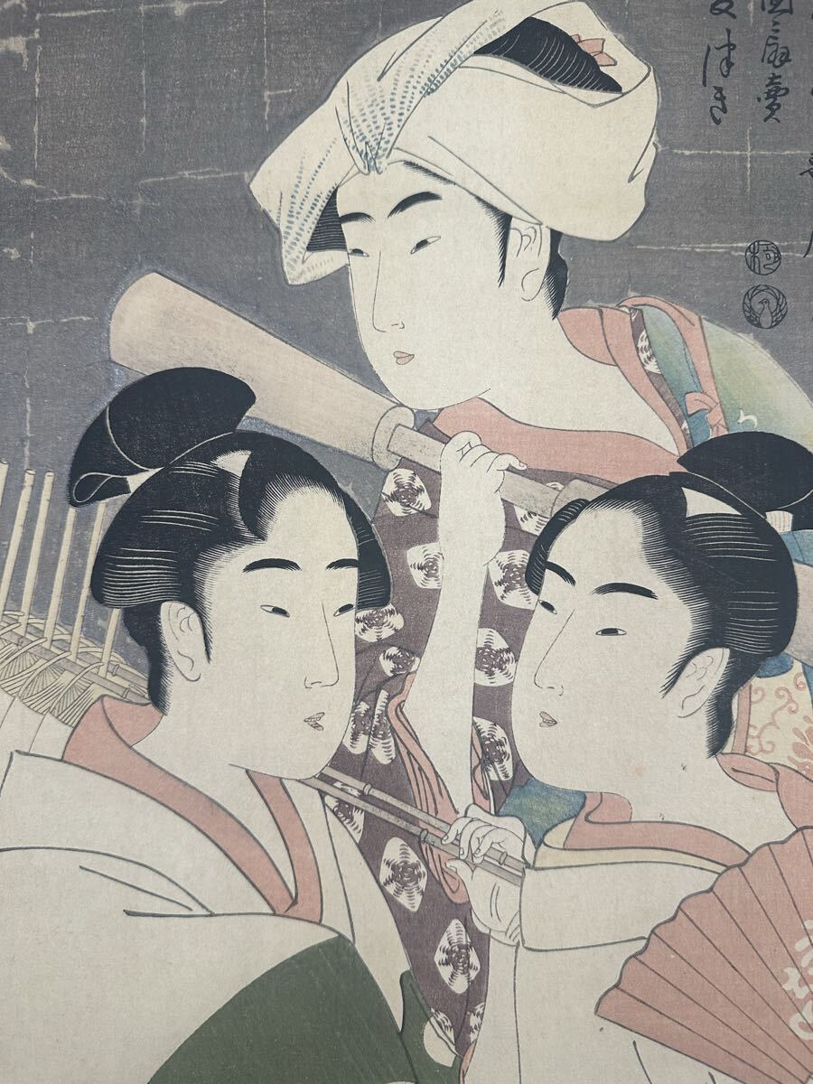 【真作】大正期 浮世絵木版画 喜多川歌麿「青楼仁和嘉女芸者之部」役者絵 美人画 大判 錦絵 保存良い