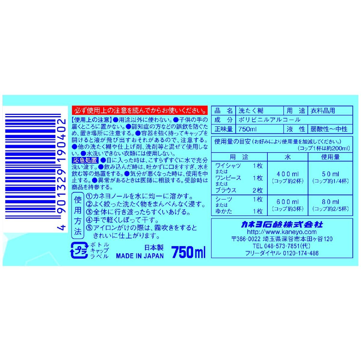 「カネヨ石鹸 PVA 洗濯のり カネヨノール ボトル 液体 750ml スライム作り」▼4901329190402▼(商品説明)・白 ・・FlavorName:単品(新モデル)・洗たくの時、糊落ちがよく黒ずみません・糊むらがなく、しなやかに仕上げます・原料はポリビニルアルコール(PVA)です・液体タイプ・原材料: ポリビニルアルコール説明 商品紹介 ●洗たくの時、糊落ちがよく黒ずみません。●糊むらがなく、しなやかに仕上げます。●原料はポリビニルアルコール(PVA)です。●液体タイプ。 原材料・成分 ポリビニルアルコール