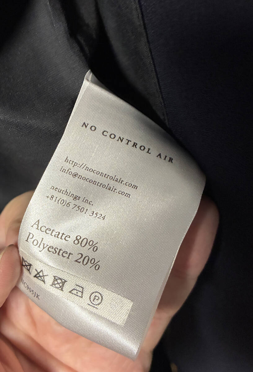 試着のみ未使用品 NO CONTROL AIR ノーコントロールエアー アセテート ポリエステルライトクレープ ダブルクロス ノーカラージャケット