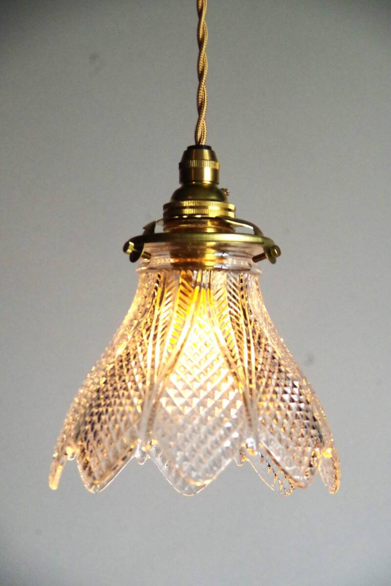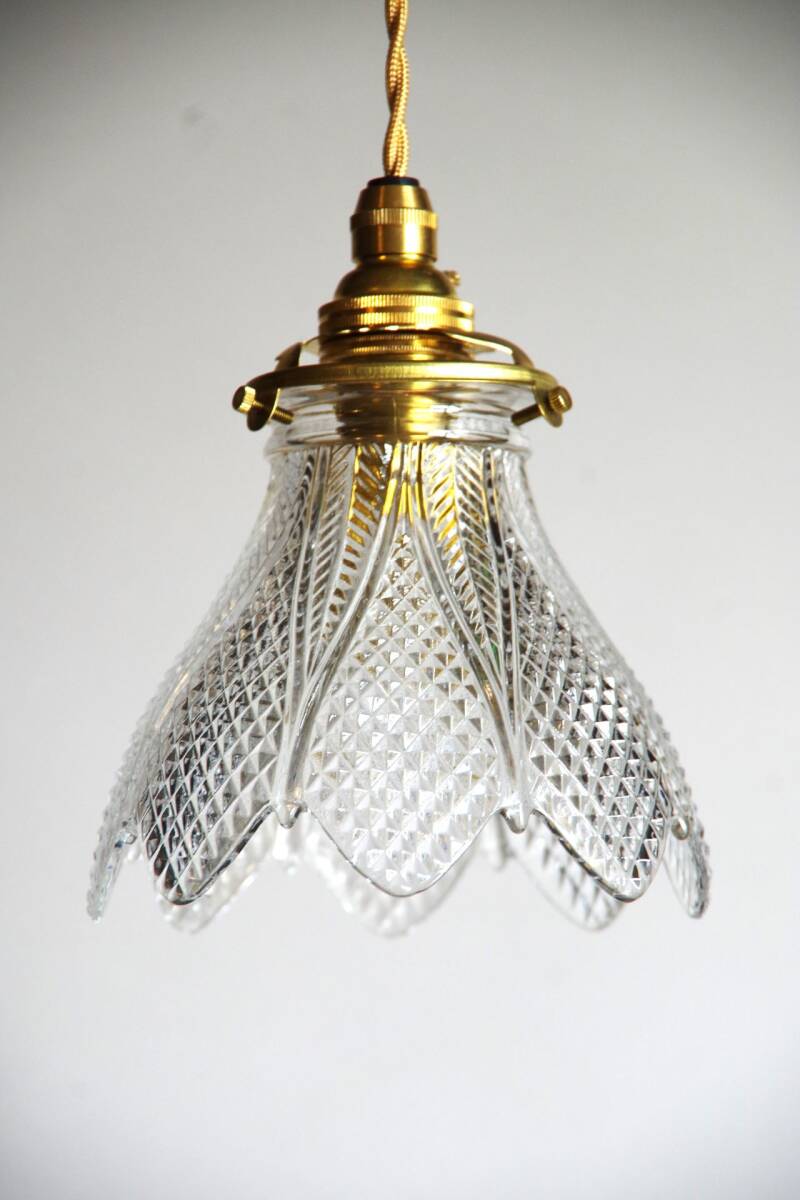 ☆フランス製 アンティーク 希少 Baccarat 本物保証 オールド バカラ ガラス ランプ シェード 照明 灯具付 E☆ № 22