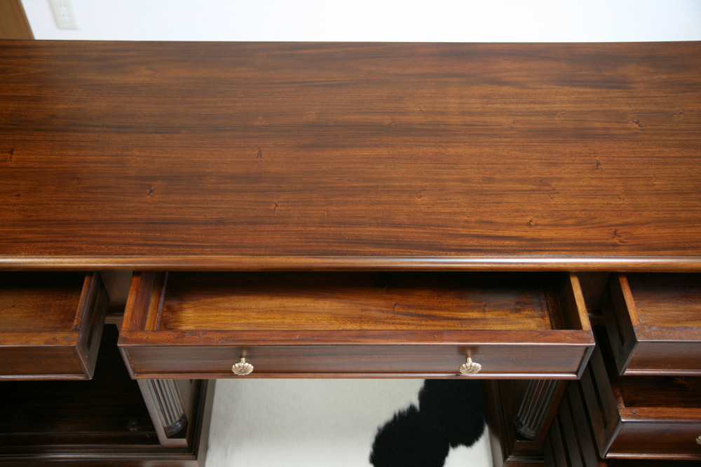 | 商品紹介 | ■天板、引出し、扉、幕板、構造材は,贅沢にも全て高級マホガニーを使用致しております。 ■アンティーク調のデスクになり年月を重ねるごとに味わい深くなります。 ■ビクトリア時代に作られた、同じ工法で製造されており、引出しが、アリ組みで、本体・扉が、ほぞ構造になっており長期使用に耐えうる作りになっております。 ■熟練された家具職人によって製造されております。 |